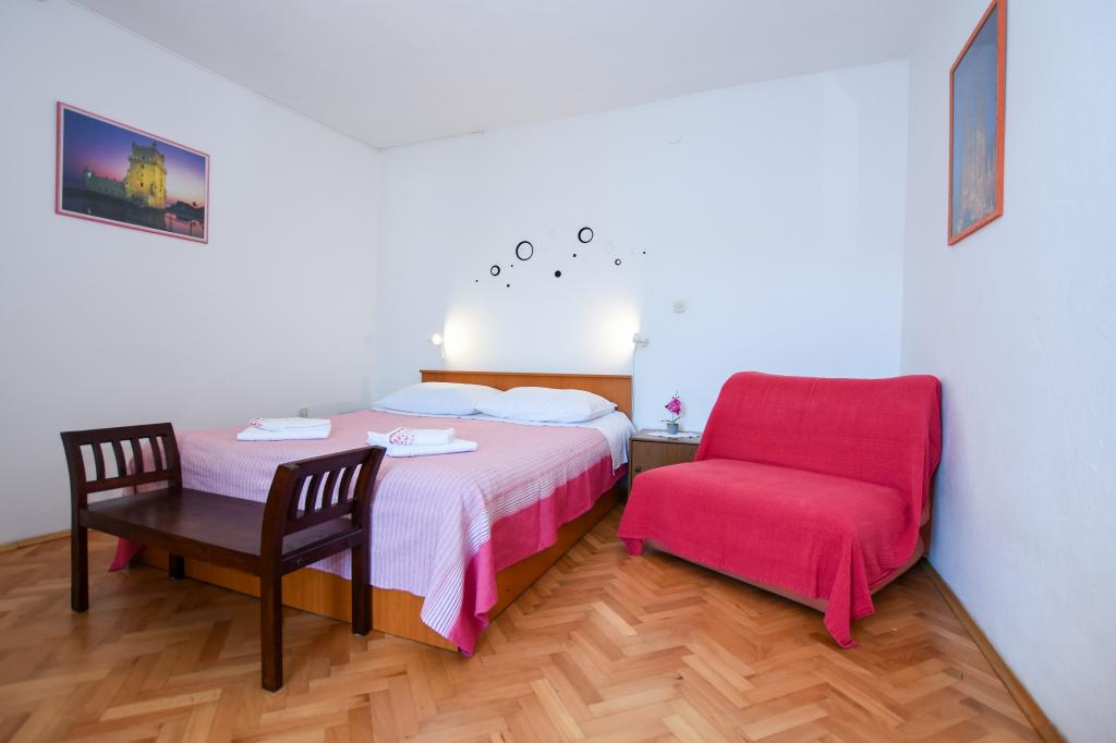Zeer mooie, vriendelijke en behulpzame eigenaars. Zeer goed contact. Kamer - schoon, goed onderhouden, grote, zeer goed uitgerust (koelkast, fornuis, borden, bestek, potten, haardroger, parasol op het strand, zijn blij met schone ruikende lakens en handdoeken). Mooi uitzicht vanaf het terras en balkon. Verzekerd van een parkeerplaats op ongeveer 100 meter van het kleine strand in de buurt van het huis. Mooie, charmante stad. Dit gebied heeft veel plaatsen om te verkennen. Zowel wij als de kinderen waren erg blij en blij Kroatië. Wij raden!