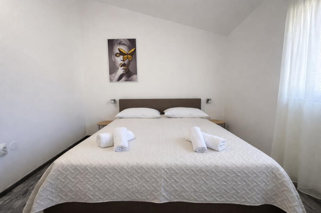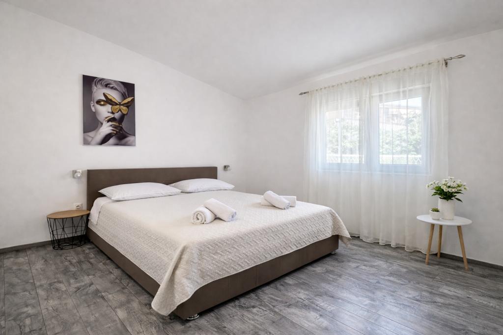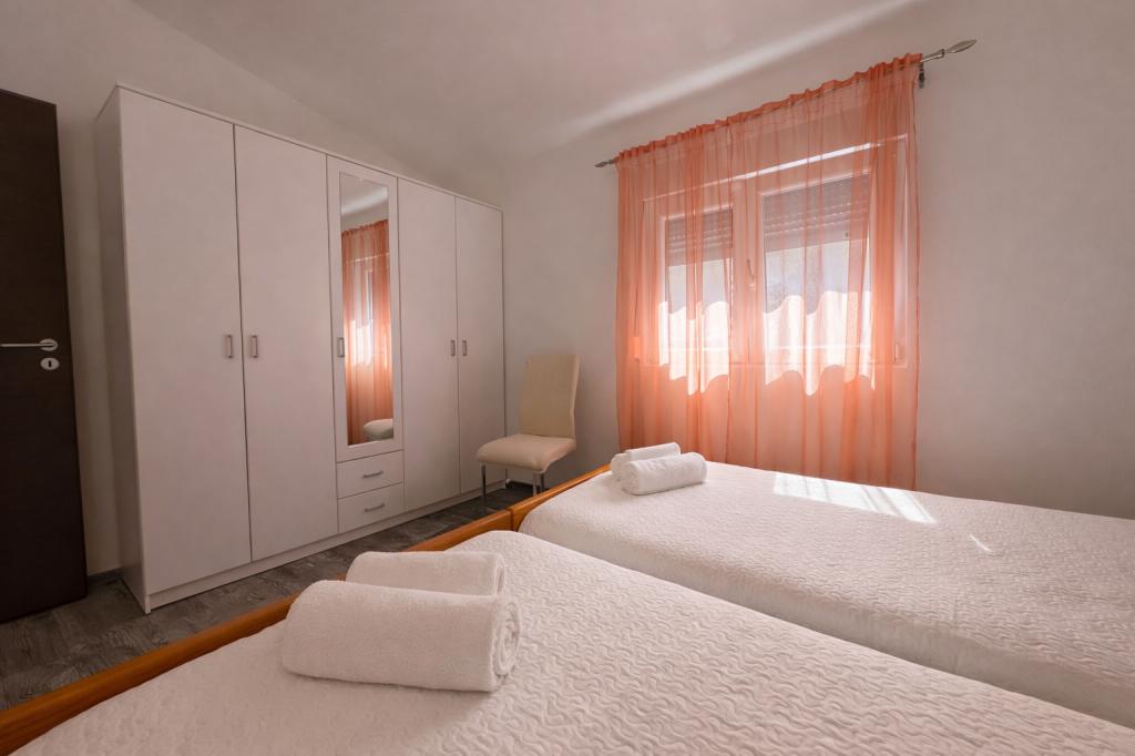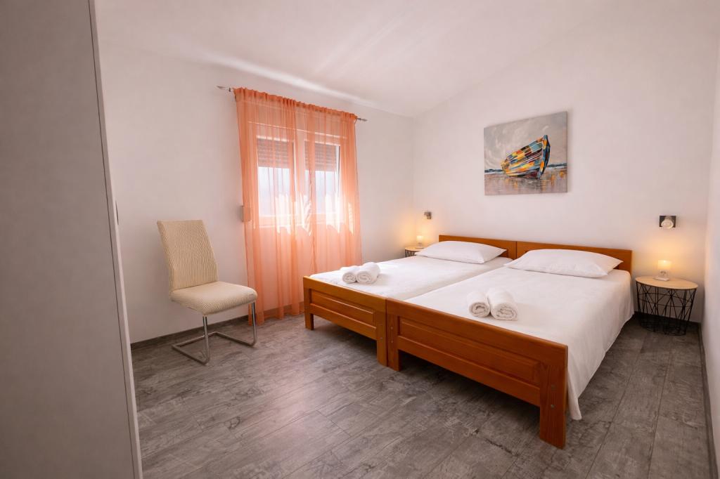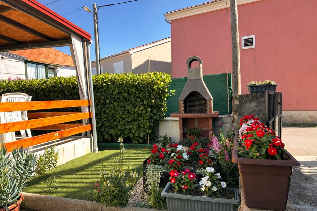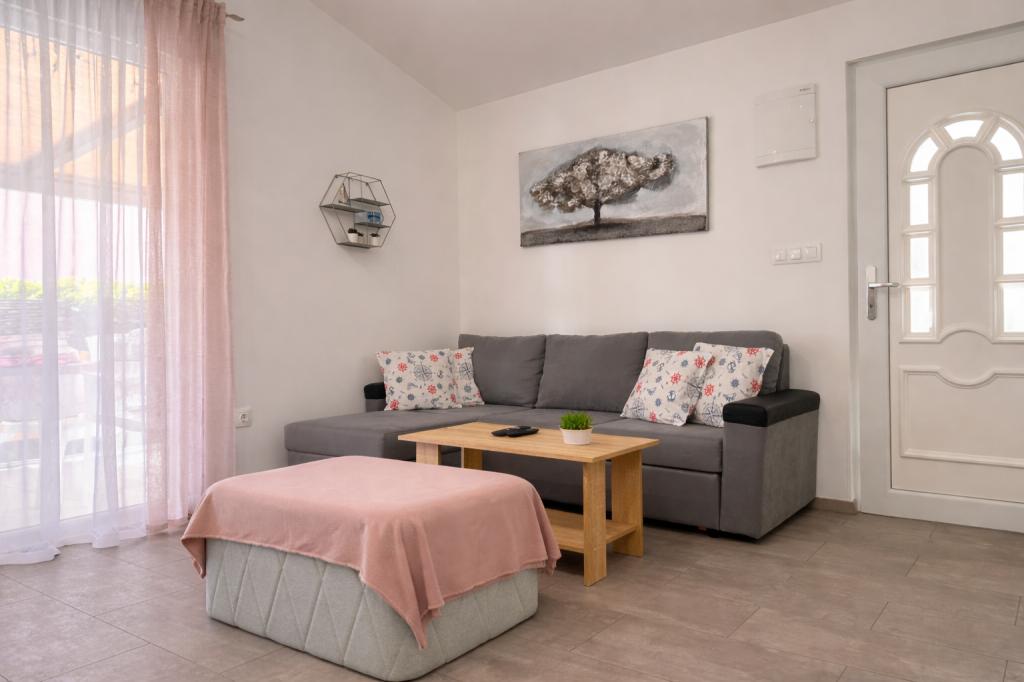 De accommodatie biedt plaats aan maximaal 5 gasten en beschikt over twee slaapkamers met tweepersoonsbedden (160x200) en een extra bed voor een kind tot 12 jaar in de woonkamer. Gasten hebben toegang tot beddengoed en handdoeken, een badkamer met douche en wasmachine, een gezellige woonkamer met tv en een volledig uitgeruste keuken (koelkast, fornuis, oven, vaatwasser, waterkoker en servies). Het overdekte terras is ideaal voor een kopje koffie in de ochtend of om te ontspannen, en gasten hebben toegang tot een eigen parkeerplaats. De tuin is omheind. De accommodatie ligt op 800-900 meter van het dichtstbijzijnde strand, terwijl de winkel en bakkerij op slechts 100 meter afstand liggen. De accommodatie is gemakkelijk bereikbaar vanaf de snelwegafslag bij Pakoštane, op ongeveer 15 minuten rijden. Welkom! :) Gebruik het contactformulier voor al uw vragen! BEDANKT :) De prijslijst voor het seizoen 2026 is bijgewerkt!