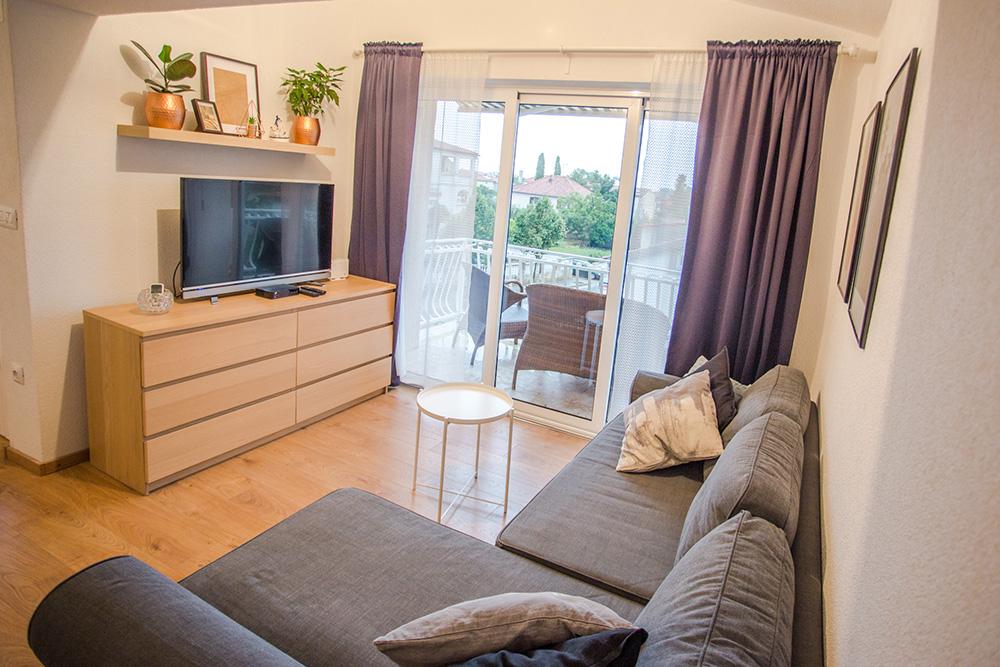Het appartement is gelegen aan de ingang van Pakostane, gelegen op de tweede verdieping van het huis. Het heeft drie kamers met twee badkamers en een terras. Het strand en het centrum liggen op 10 minuten lopen.