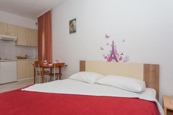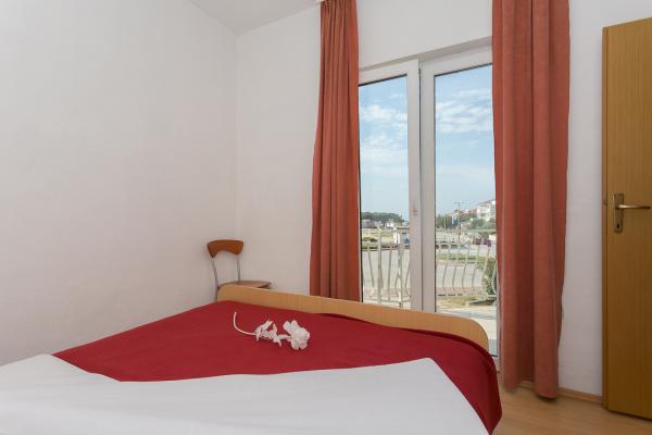 Eén- en tweekamerappartementen en studio's, in het centrum van Pakoštan, direct naast de hoofdparkeerplaats. Afstand van het strand 70 meter, 10 meter van de bank en winkel. Beveiligde parkeerplaats voor het appartement, grill en wifi!