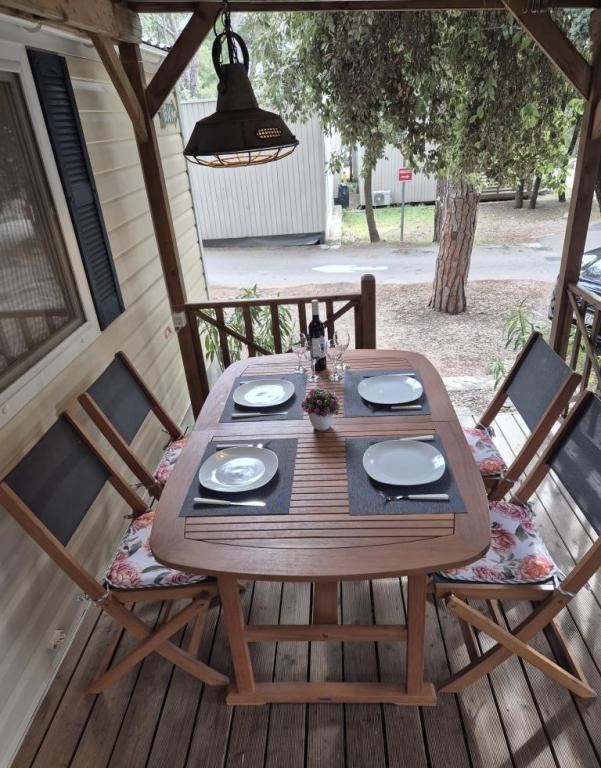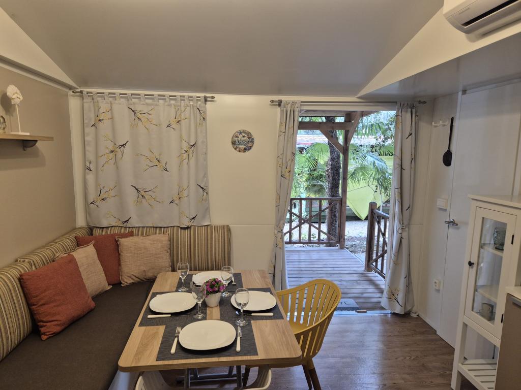 Comfortabele accommodatie: De stacaravan Glamour Pakoštane in Pakoštane biedt twee slaapkamers en twee badkamers, plus een ruime woonkamer. De accommodatie beschikt over een volledig uitgeruste keuken, airconditioning en gratis WiFi. Recreatiemogelijkheden: Gasten kunnen genieten van het terras, de bar en het kinderzwembad. Verder zijn er een eethoek, tuinmeubilair en gratis privéparkeergelegenheid op het terrein. Toplocatie: De camping ligt op 27 km van de luchthaven van Zadar, op een steenworp afstand van Punta Beach. In de buurt bevinden zich de jachthaven Kornati en het Biograd Heritage Museum, beide op 8 km afstand. De omgeving biedt volop mogelijkheden om te zeilen.
