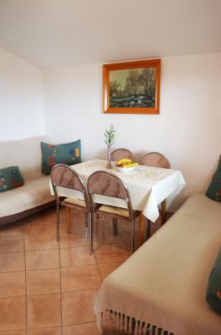 De vredige en rustige omgeving, weg van de voorzieningen (restaurants, winkels en stranden). Op het strand is het noodzakelijk om een auto (3-4 min.), Lopen (30 minuten) rijden. Het appartement is ideaal voor families die privacy en rust zoeken. De eigenaren zijn vriendelijk, behulpzaam en zeer vriendelijk. Appartement was goed adequaat uitgerust voor vijf personen met de mogelijkheid van self-catering veranderingen in landgebruik en wasmachine. Asset heeft een balkon met een prachtig uitzicht op zee. De faciliteit is ook een basketbalring.