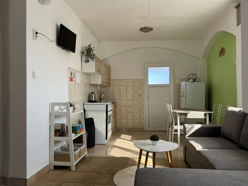 De appartementen bevinden zich op de begane grond en de eerste verdieping van een gezinswoning in een rustige en aangename buurt, ideaal voor een ontspannen vakantie. Het zijn modern ingerichte appartementen met twee slaapkamers die van alle gemakken zijn voorzien voor een aangenaam verblijf. Gasten hebben toegang tot gratis wifi, airconditioning, een smart-tv, beveiligde parkeergelegenheid en de mogelijkheid om te barbecueën. Het strand en het stadscentrum liggen op slechts 300-400 meter afstand, dus een auto is niet nodig. In de directe omgeving vindt u drie grote supermarkten, een postkantoor, een kliniek, een apotheek en een markt, evenals talrijke restaurants, bakkerijen en cafés. Tijdens de zomermaanden worden er dagelijks diverse evenementen, entertainment en culturele activiteiten in het stadje georganiseerd. Er is ook een speeltuin in de buurt van de appartementen, waardoor de accommodatie bijzonder geschikt is voor gezinnen met kinderen.