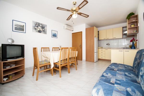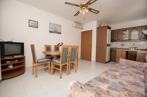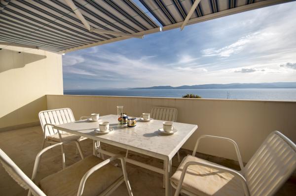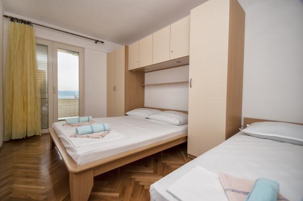 Moderne appartementen, gelegen op een klein kiezelstrand, op 50 meter van de zee met een groot balkon met uitzicht op de zee, gericht op het zuiden, en hebben een kwaliteit zonnebrandcrème. Van het stadscentrum, restaurants, cafés en een groot strand ligt op 5 minuten lopen. Alle appartementen zijn voorzien van airconditioning, dit jaar hebben we ook air-conditioning in elke kamer, een totaal van 10 air-conditioners. Wi-Fi internet in alle suites, magnetron, satelliet-tv ook. Parkeren is gratis, er zijn voldoende parkeerplaatsen voor alle gasten in het hele huis.