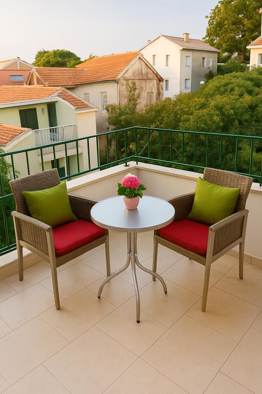 We hebben de eerste week doorgebracht van juli is er, Apartment 1 op de eerste verdieping, echtpaar met drie jaar oude zoon. Appartement is echt ruim voor al de rommel die u kunt verwachten met een klein kind. Inclusief al zijn speelgoed en bezittingen. Fantastisch is het balkon, want het is veel groter dan je te zien op foto's. Niet alleen ruimte voor een tafel en stoelen voor vier personen, maar veel ruimte voor mooie grote parasol en voor kinderen om mee te spelen ... zelfs met kleine fiets. Cafe beneden is niet luidruchtig en de deuren van het appartement zijn perfect silentproof. A / C werkt goed in de slaapkamer, douche altijd met warm water, WiFi is sterk genoeg om video's van you tube. Bakker is net naast de deur, zodat u vers brood, broodjes en gebak elke ochtend op slechts 10 meter van uw appartement kan hebben. Het enige probleem is parkeergelegenheid plaats, maar de familie van de eigenaars is erg aardig en behulpzaam ook op deze, dus u gratis parkeergelegenheid te krijgen, misschien in de verte, maar ze zullen het te regelen. Keuken is goed uitgerust. TV werkt goed, maar alleen lokale zenders. We waren met behulp van wifi en youtube voor een kind of als muziek nodig was.