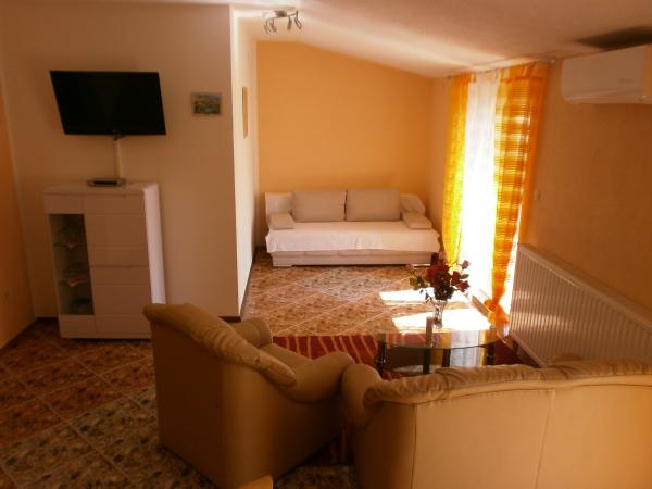 We verbleven in een mooi appartement met een prachtig terras op de begane grond, het appartement is goed onderhouden, onberispelijk schoon en netjes, comfortabel en wat belangrijk is, het is erg rustig en stil. De gastvrouw, mevrouw Antonija, trakteerde ons elke dag op haar zelfgemaakte producten, wat zelfgemaakte walnoten, wat fruit en groenten uit haar eigen tuin, die direct naast het huis ligt. Ik raad mevrouw Antonija en haar accommodatie aan iedereen aan. Beste Antonija, heel erg bedankt! Marina met haar familie.