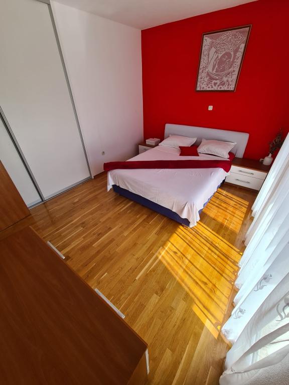 Inlusief wel Toeristenbelasting.De prijs van het appartement is ook inclusief een ligstoel die wordt geleverd met een parasol voor betere bescherming tegen de zon op hete zomermiddagen en ochtenden. Parkeren is ook bij de prijs inbegrepen en bevindt zich direct naast het appartement. Bij een reservering van 7 dagen en meer, serveren wij gasten vis gevangen met onze eigen boot en perziken geplukt in ons eigen veld. We verkopen ook zelfgemaakte glühwein en brandewijn tegen een lage prijs. We bieden ook zelfgemaakte olijfolie aan, en we verkopen deze ook in grotere hoeveelheden.