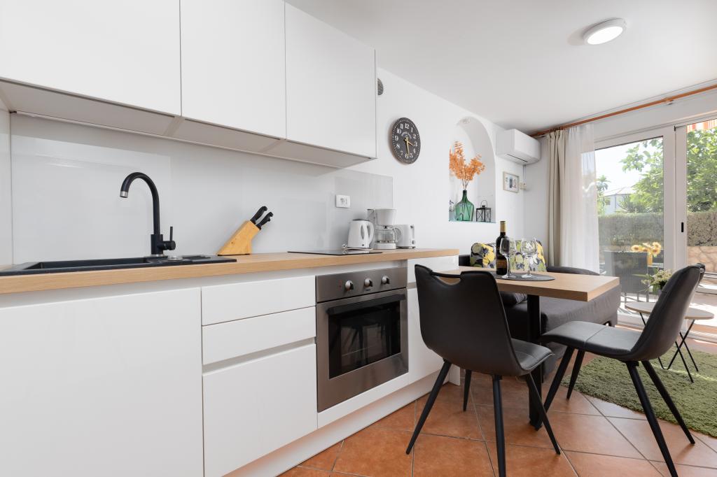 Een gezellig en net huis in een rustige omgeving, met een prachtig aangelegde tuin en een overdekt terras, ideaal om buiten te vertoeven. De tuin is smaakvol ingericht met een gazon, bloemen en mediterrane planten en biedt privacy en een aangename sfeer om te ontspannen. Het restaurant en het strand liggen op slechts twee minuten lopen van het huis.