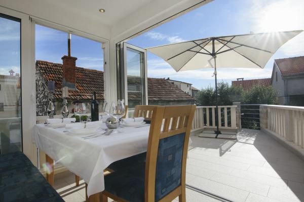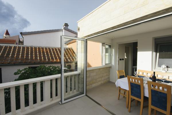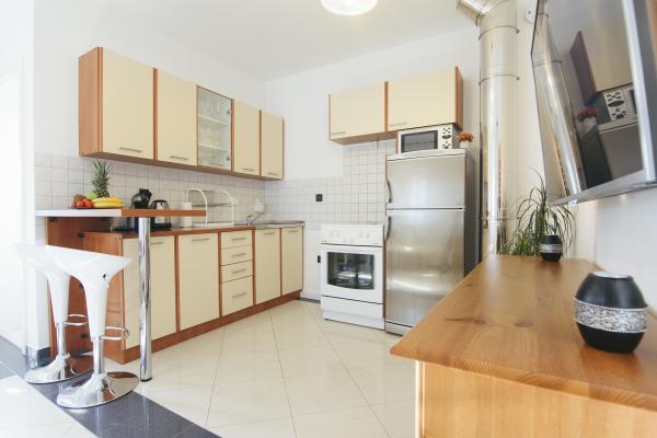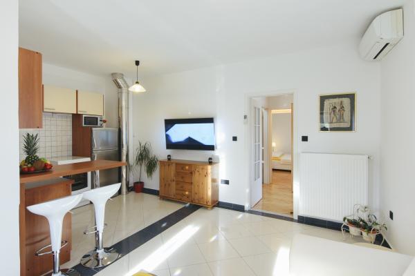 Het centrum is een drie slaapkamer appartement van 75m2, die plaats biedt aan maximaal 7 personen, gelegen in het centrum van Posedarje, Noord-Dalmatië. Slechts 20 minuten van de drukte van de prachtige stad Zadar, de locatie van het appartement is het uitgangspunt voor wandelingen en sightseeing, en onze ruim terras met uitzicht op het centrale plein is ideaal voor rust en genieten van de zonnige dagen en nachten vol muziek. Het appartement is gelegen op de eerste verdieping van het onlangs gerenoveerde traditionele Dalmatische huis. Het heeft een eigen aparte ingang, wi-fi, airconditioning en alles wat u nodig heeft voor uw vakantie.