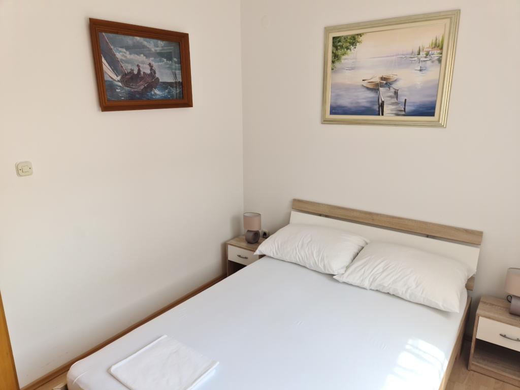 Volledig uitgerust appartement van 30 m² met aparte slaapkamer, balkon en privéparkeerplaats, ideaal voor koppels of gezinnen, gelegen op de eerste verdieping van een stadsvilla, op 1 minuut lopen van het strand en de cafés aan zee. Het bestaat uit een slaapkamer met een comfortabel tweepersoonsbed en een grote schuifkast, een woonkamer met een keuken (koelkast, vaatwasser, kookplaat met oven, magnetron, koffiezetapparaat, waterkoker) uitgerust met een slaapbank, tafel en eetkamerstoelen. , salontafel en smart flat TV (gratis wifi), badkamer met douche, toilet en wasmachine, het appartement is voorzien van airconditioning. In de directe omgeving van het appartement bevinden zich twee zand-/kiezelstranden, evenals diverse sport-, recreatie- en horecafaciliteiten (cafés, restaurants, tennisbanen, aquapark...)