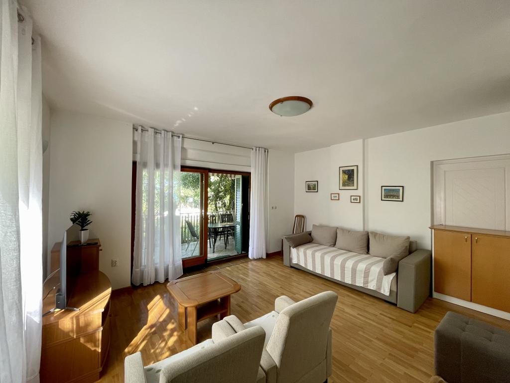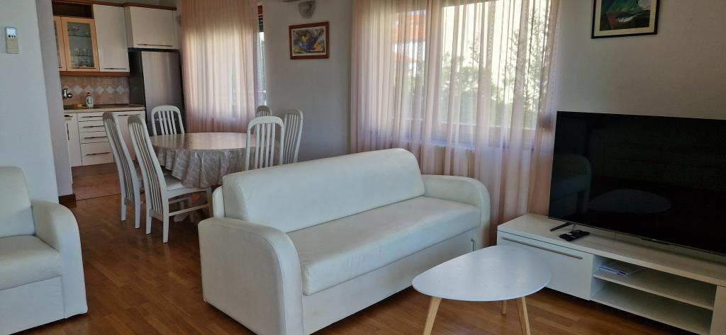Villa EDEN is gelegen op een van de MEEST AANTREKKELIJKE LOCATIES in de hele omgeving, direct aan het zandstrand Jaz in Preko op het eiland Ugljan. De appartementen in Villa EDEN zijn zeer comfortabel en bieden een uitzonderlijk uitzicht op zee, het hele zandstrand, het groene eilandje Školjić in de directe omgeving en de stad Zadar. Het strand naast Villa EDEN is perfect voor gezinnen met kinderen, zelfs de allerkleinsten. Villa EDEN beschikt over een eigen tuin met gazon, prieel en barbecue. In de directe omgeving, op ca. 50 meter afstand, bevinden zich diverse hoogwaardige horecagelegenheden, waaronder een strandbar, pizzeria, restaurant en banketbakkerij, waar gasten zich optimaal kunnen vermaken. De omgeving en de stad Preko zijn zeer netjes met goed onderhouden promenades, fietspaden, goed onderhouden stranden en talloze voorzieningen die een topbestemming zonder drukte kenmerken. De nabijheid van Zadar, het aanbod aan excursies en de kinderfaciliteiten maken uw zomervakantie in onze stad en Villa EDEN onvergetelijk. Wees onze gasten, we zijn er zeker van dat de meesten van jullie nog jaren zullen terugkomen