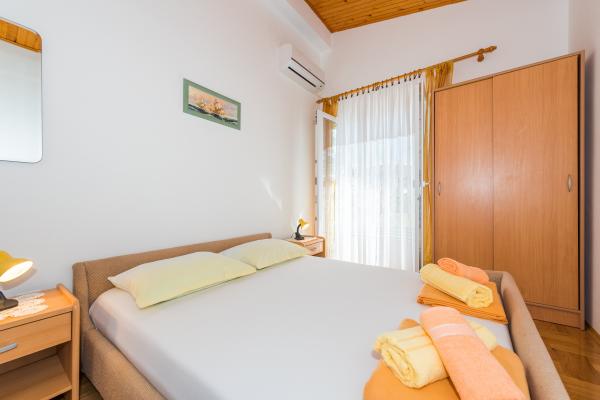 Een familiehuis met drie appartementen in een rustige omgeving van een dennenbos met uitzicht op de kristalheldere zee op 10 meter afstand. Eerste rij naar de zee. Alle gasten krijgen parkeergelegenheid en het gebruik van een buitengrill, evenals een plek om uit te rusten in de schaduw van de pijnbomen. Elk appartement heeft een eigen ingang, is modern uitgerust (satelliet, wi-fi) en heeft een terras met uitzicht op zee. Langs de zee strekt zich een 5 km lange promenade uit, geschikt om te joggen, wandelen of fietsen, en in het achterland van het dorp zijn er mountainbikepaden. We zijn gevestigd in de buurt van twee nationale parken: NP Krka en NP Kornati, evenals de steden Šibenik, Trogir en Split, die onder bescherming staan van Unesco. Wij bieden u een aangename en ontspannende vakantie in onze appartementen, en we kijken uit naar uw komst, de familie Marinov Mirela en Branimir