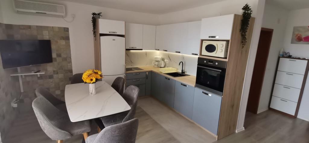We voelden ons echt thuis in de appartementen van Vera. De appartementen zijn modern ingericht met alles wat je nodig hebt en absoluut perfect schoon. Het balkon biedt een ongelooflijk uitzicht op de zee. De gastheren in deze appartementen zijn de vriendelijkste die we ooit hebben gehad. We werden verwelkomd met fijn bereide zelfgemaakte salami en worstjes, evenals verschillende likeuren en cognac. Later maakten ze een diner voor alle gasten en trakteerden ze ons op gegrilde vis en vlees. En over Franja's pareltjes, om nog maar te zwijgen over hoe leuk ze waren en die waren er ook nog volop. We zouden deze appartementen aan iedereen aanbevelen, omdat ze de beste zijn in de hele Adriatische Zee. Volgende zomer komen we zeker terug.