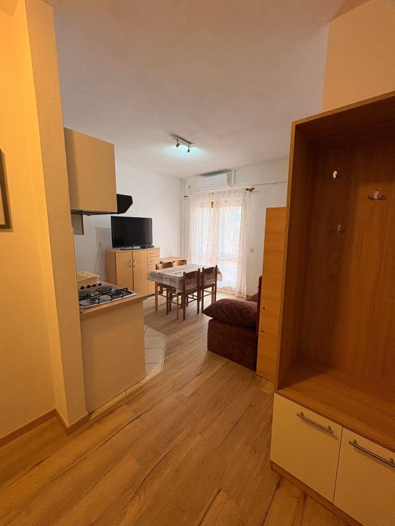 Op ons terrein hebben we voor elk appartement een verharde, overdekte parkeerplaats gereserveerd. We hebben ook parkeergelegenheid voor meerdere auto's per appartement. In het bijgebouw hebben gasten toegang tot een taverne waar ze kunnen socialiseren en eten bereiden met de nodige eetbenodigdheden. Het zwembad, dat aan twee kanten overloopt en is uitgerust met twee soorten watermassages, is beschikbaar voor gasten van 08:00 tot 22:00 uur. Ligstoelen en parasols zijn bij de prijs van het appartement inbegrepen. Een vast zonnescherm van 12 meter lang biedt veilige bescherming tegen de zon. Twee fitnessapparaten zijn beschikbaar voor gasten van 08:00 tot 22:00 uur en zijn bij de prijs van het appartement inbegrepen. De wasmachine bevindt zich in het bijgebouw en is beschikbaar voor gasten van 08:00 tot 22:00 uur en is bij de prijs van het appartement inbegrepen. De gastheren staan altijd klaar om te helpen met het bereiden van eten op de barbecue.