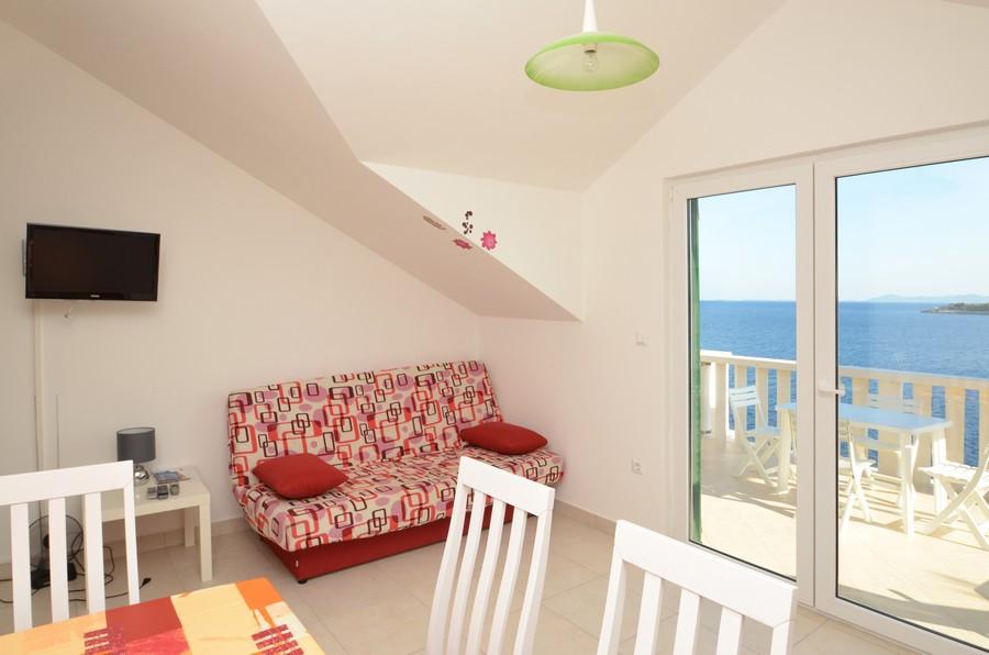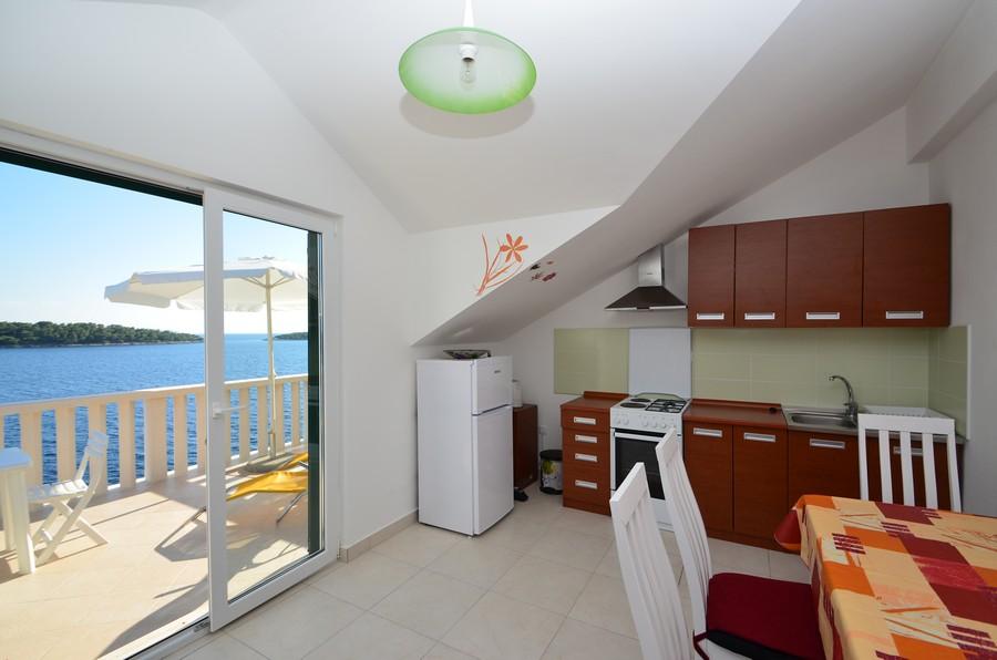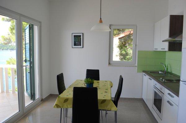 Het huis ligt aan zee op een rustige plek. De appartementen zijn nieuw en goed uitgerust. Aan de voorkant van het huis is een grote parkeerplaats, gratis en gezellig voor al onze gasten. Elk appartement heeft een eigen terras met uitzicht op de zee en de eilandjes. Er zijn twee privéstranden met gratis parasols en ligstoelen in de buurt, zoals een duikschool, zeilschool, bootverhuurbedrijf, bromfiets, kano, diverse restaurants, prachtige wandel- en fietspaden.