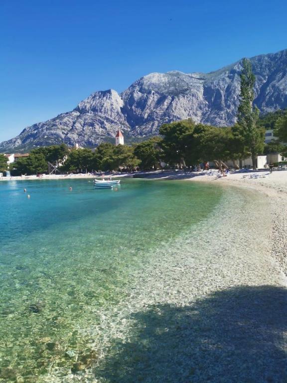 Appartement "Krissi" ligt in Promajna. Slechts 50 meter van de zee en een prachtig kiezelstrand met veel natuurlijke schaduw, een markt, restaurants en cafés. Het is verbonden met Baska Vod via een promenade door een prachtig dennenbos. Makarska ligt op 6 km afstand. Appartement Krissi (2+2) is van alle gemakken voorzien en bevat 2 slaapkamers, woonkamer met keuken met vaatwasser, koelkast, wasmachine, safe, TV, WIFI/Internet, badkamer met douche en föhn.Balkon/ Loggia met uitzicht op de zee.