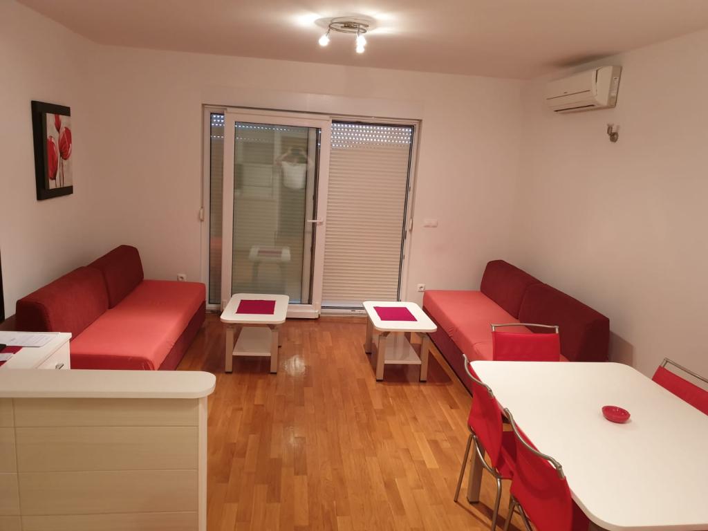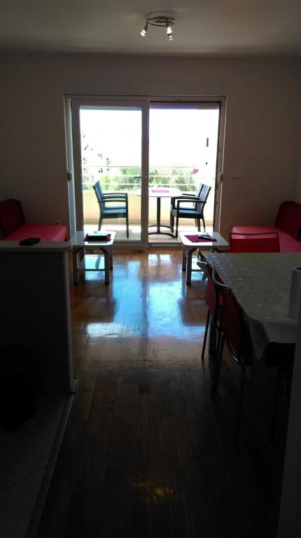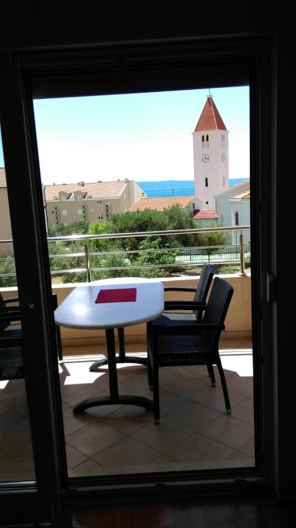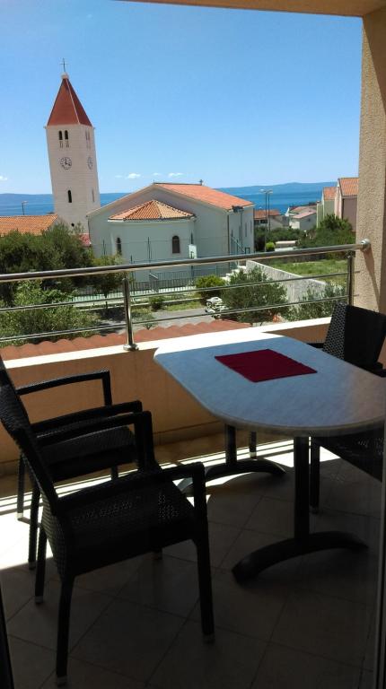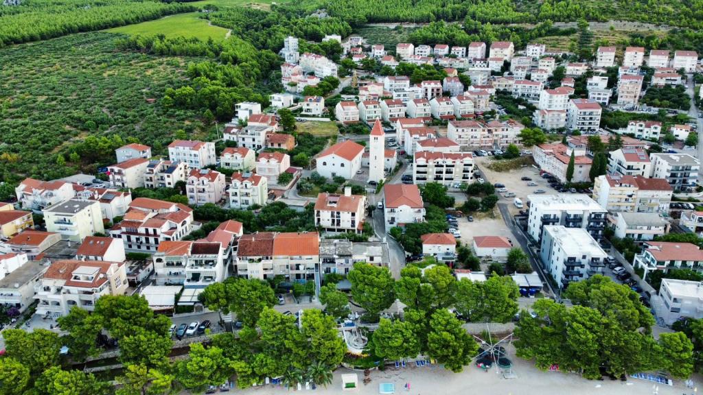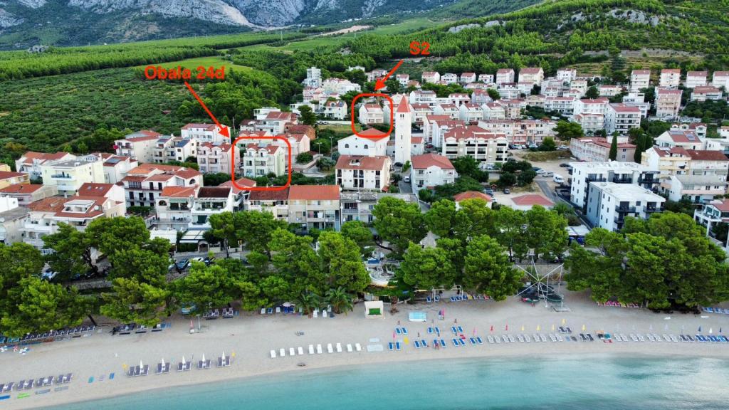 Appartement S2 (2+2) is gelegen in het stadje Promajna, in het centrum, net boven (ten noorden van) de kerk - op ongeveer 100 meter van het hoofdstrand, aan Prilaz obali 24. Er is parkeergelegenheid voor één auto naast het appartement.