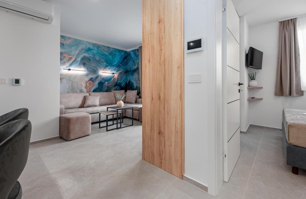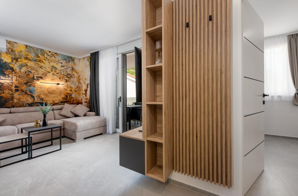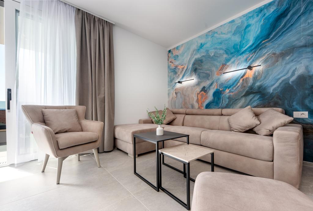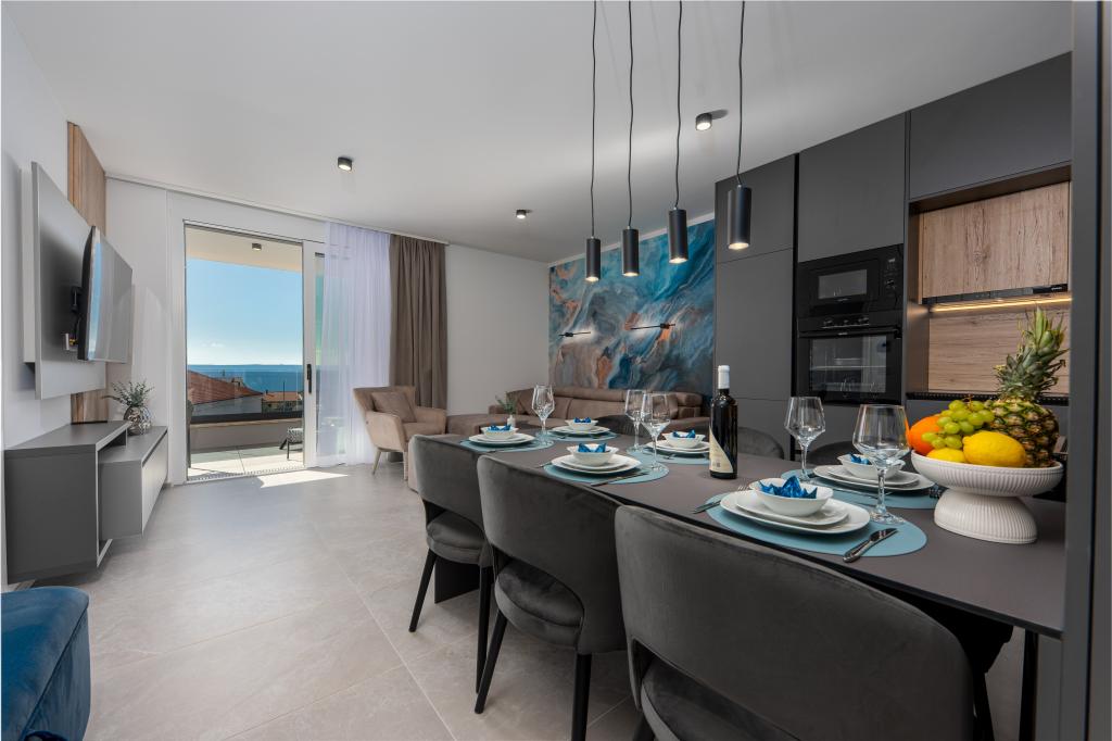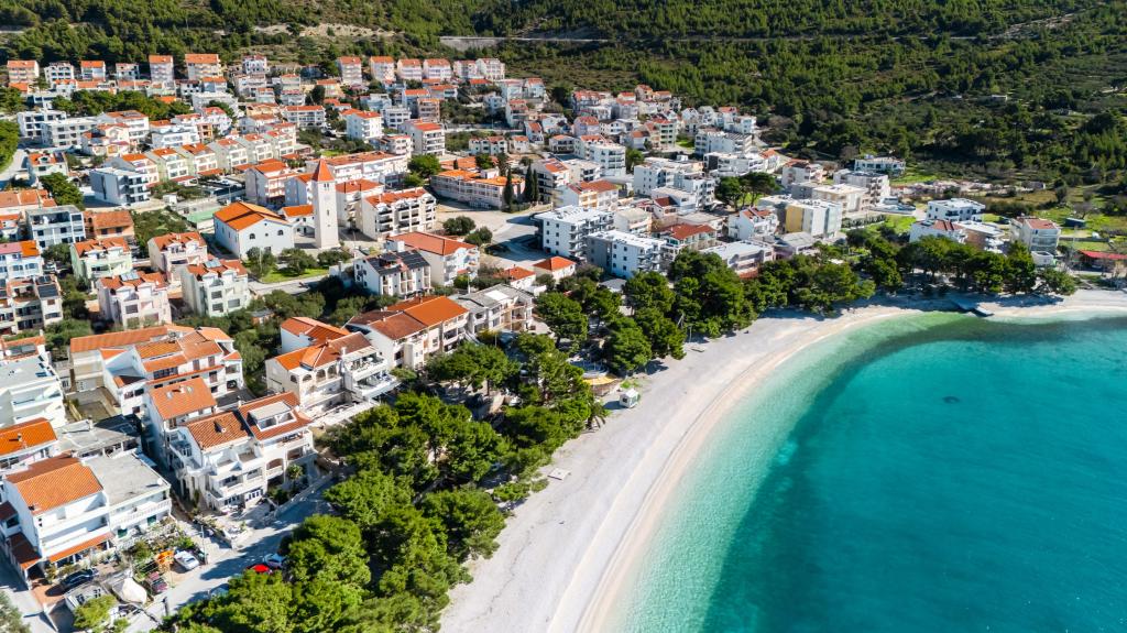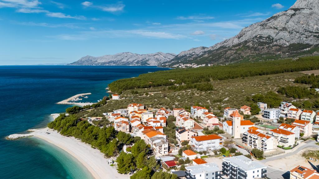 Apartments Sunshine-Breeze aan Ul. Prilaz obali 22a in Promajna biedt volledig en modern ingerichte appartementen (3x 4+2 personen en 3x 2+2 personen) in een rustige buurt, ideaal voor een ontspannen vakantie. De accommodatie ligt op slechts 2 minuten lopen van het hoofdstrand. Alle appartementen zijn voorzien van airconditioning, gratis wifi, parkeergelegenheid en ruime terrassen om te genieten van de mediterrane sfeer. Appartementen 2+2 bieden uitzicht op zee en Bijokovo, en appartementen 4+2 bieden eveneens uitzicht op zee. Apartments Sunshine-Breeze is een nieuw gebouwd complex. Alle keukens zijn modern uitgerust (koelkast met vriezer, fornuis, oven, waterkoker, vaatwasser, koffiezetapparaat, enz.) en alle badkamers zijn modern ingericht met een wasmachine en föhn. De bedden zijn van topkwaliteit met boxspringmatrassen van medisch superluxe materiaal. Het is de perfecte keuze voor gezinnen, stellen en iedereen die wil genieten van de schoonheid van de Makarska Riviera.