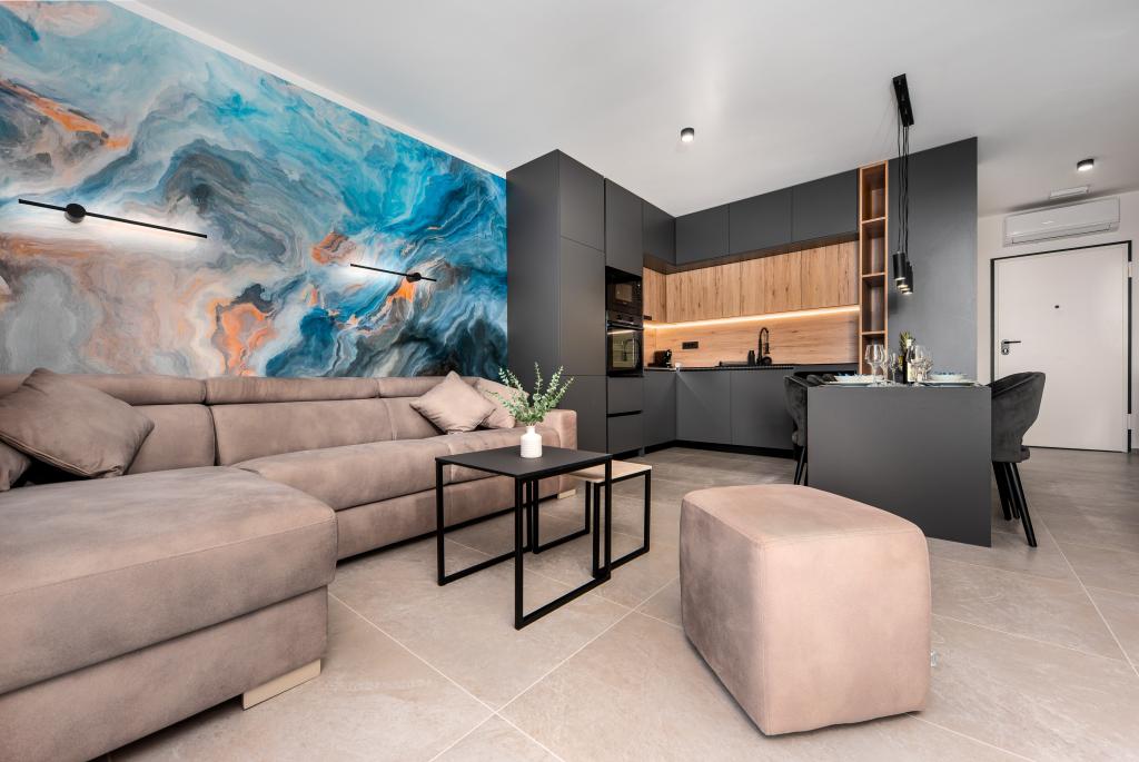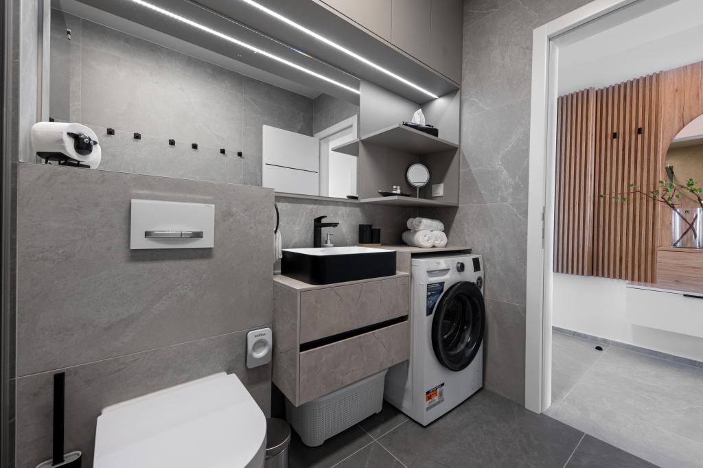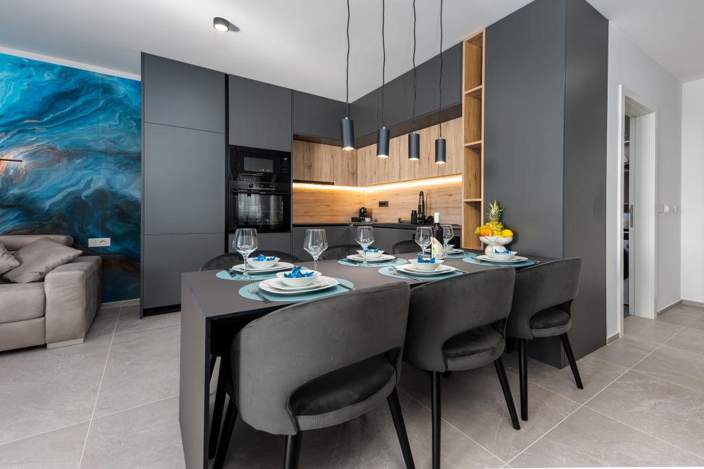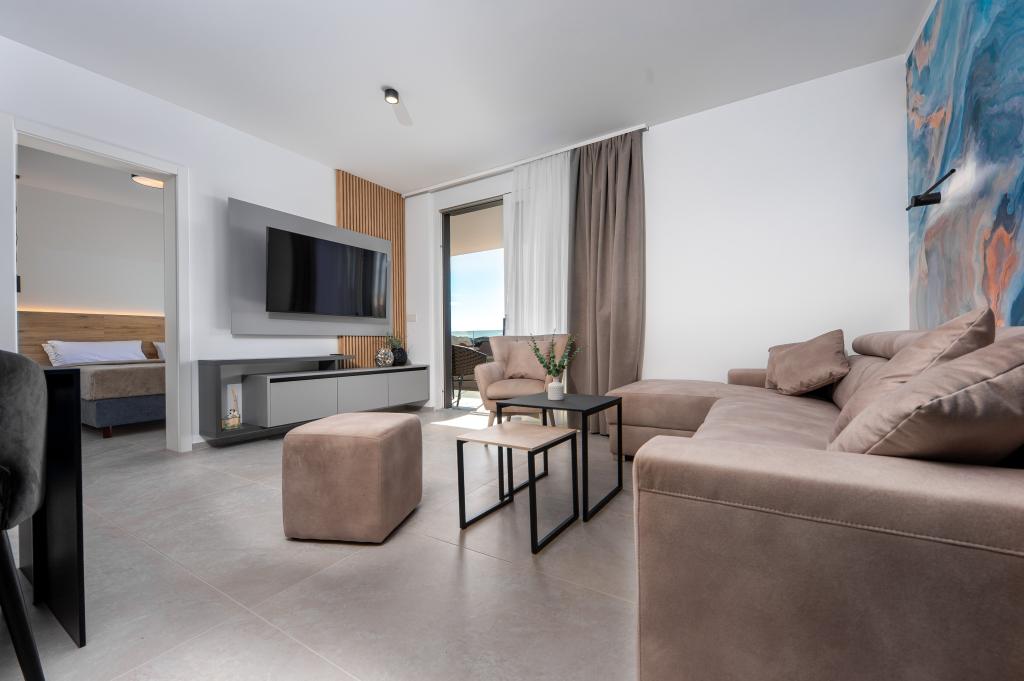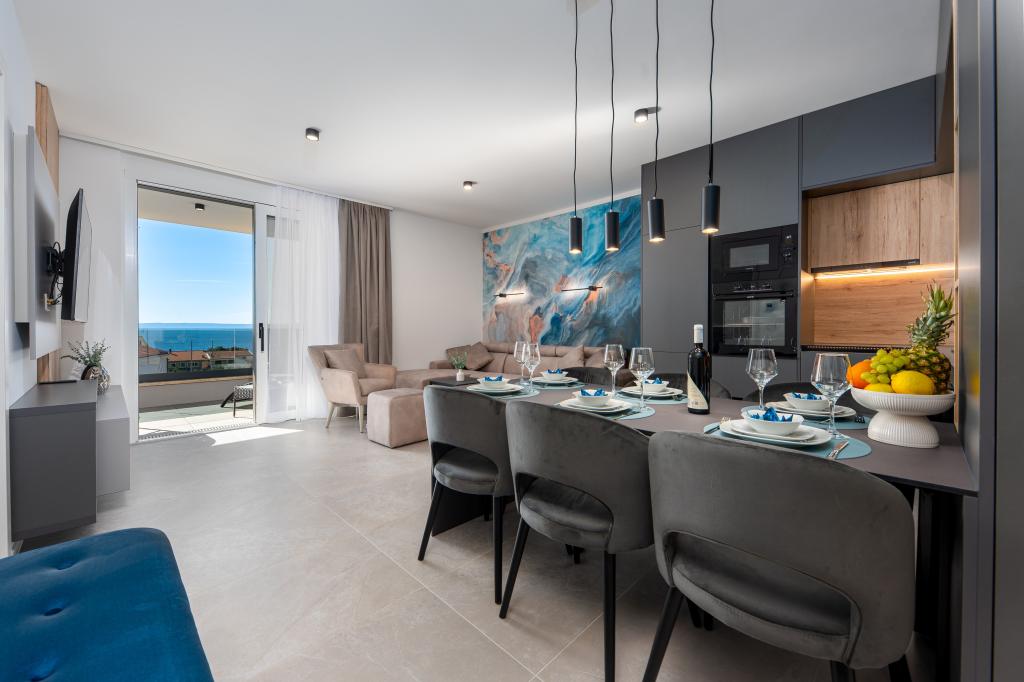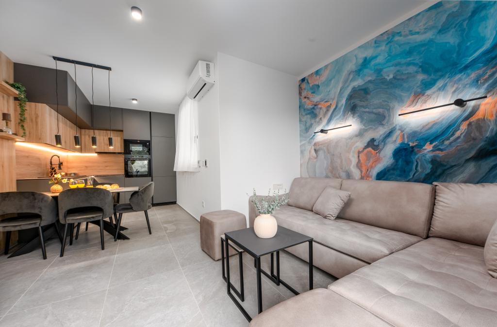Apartments Sunshine-Breeze aan Ul. Prilaz obali 22a in Promajna biedt volledig en modern ingerichte appartementen (3x 4+2 personen en 3x 2+2 personen) in een rustige buurt, ideaal voor een ontspannen vakantie. De accommodatie ligt op slechts 2 minuten lopen van het hoofdstrand. Alle appartementen zijn voorzien van airconditioning, gratis wifi, parkeergelegenheid en ruime terrassen om te genieten van de mediterrane sfeer. Appartementen 2+2 bieden uitzicht op zee en Bijokovo, en appartementen 4+2 bieden eveneens uitzicht op zee. Apartments Sunshine-Breeze is een nieuw gebouwd complex. Alle keukens zijn modern uitgerust (koelkast met vriezer, fornuis, oven, waterkoker, vaatwasser, koffiezetapparaat, enz.) en alle badkamers zijn modern ingericht met een wasmachine en föhn. De bedden zijn van topkwaliteit met boxspringmatrassen van medisch superluxe materiaal. Het is de perfecte keuze voor gezinnen, stellen en iedereen die wil genieten van de schoonheid van de Makarska Riviera.