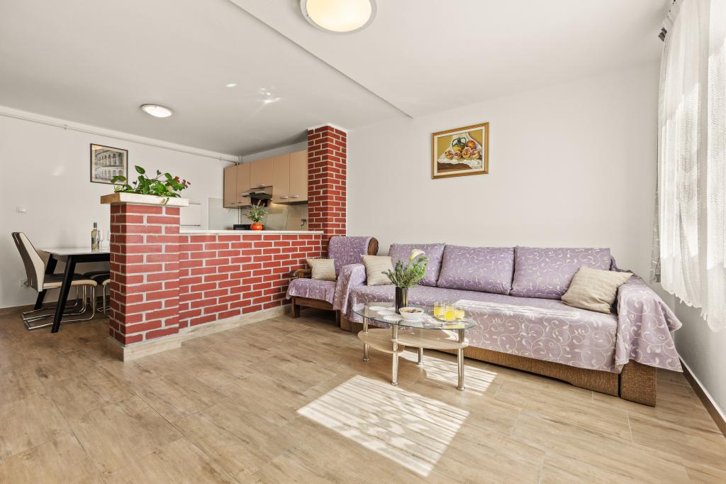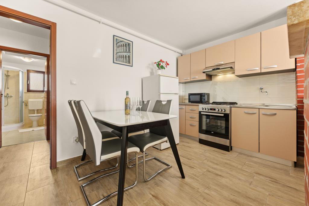 In een rustig deel van Pula vindt u uitstekend gelegen appartementen vlakbij de zee en toeristische resorts, en op loopafstand van de oude stad. De nette en comfortabele appartementen bieden alles wat u nodig heeft voor een vredige en ontspannen vakantie. De nabijheid van het openbaar vervoer zorgt ervoor dat u de drukte kunt vermijden en u zich gemakkelijk kunt verplaatsen zonder eigen auto, waarvoor gratis parkeergelegenheid beschikbaar is. Wij staan tot uw beschikking voor al uw vragen. We kijken uit naar uw aankomst!