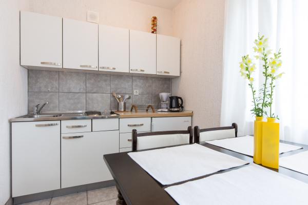 De appartementen zijn gelegen in het centrum van Krk, op 5 minuten lopen naar het strand en de nabijgelegen winkels. Naast de standaard uitrusting, zijn de appartementen tevens voorzien van: - Satelliet-tv - Gratis Wi-Fi - Air conditioning - Waterkoker, koffiezetapparaat, broodrooster, ...) Elk appartement heeft een terras en een parkeerplaats. We wonen in hetzelfde huis en staan tot uw beschikking voor verdere vragen en assistentie. Welkom!