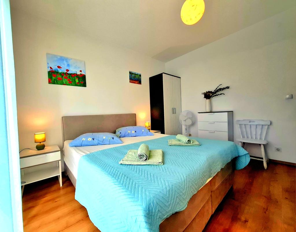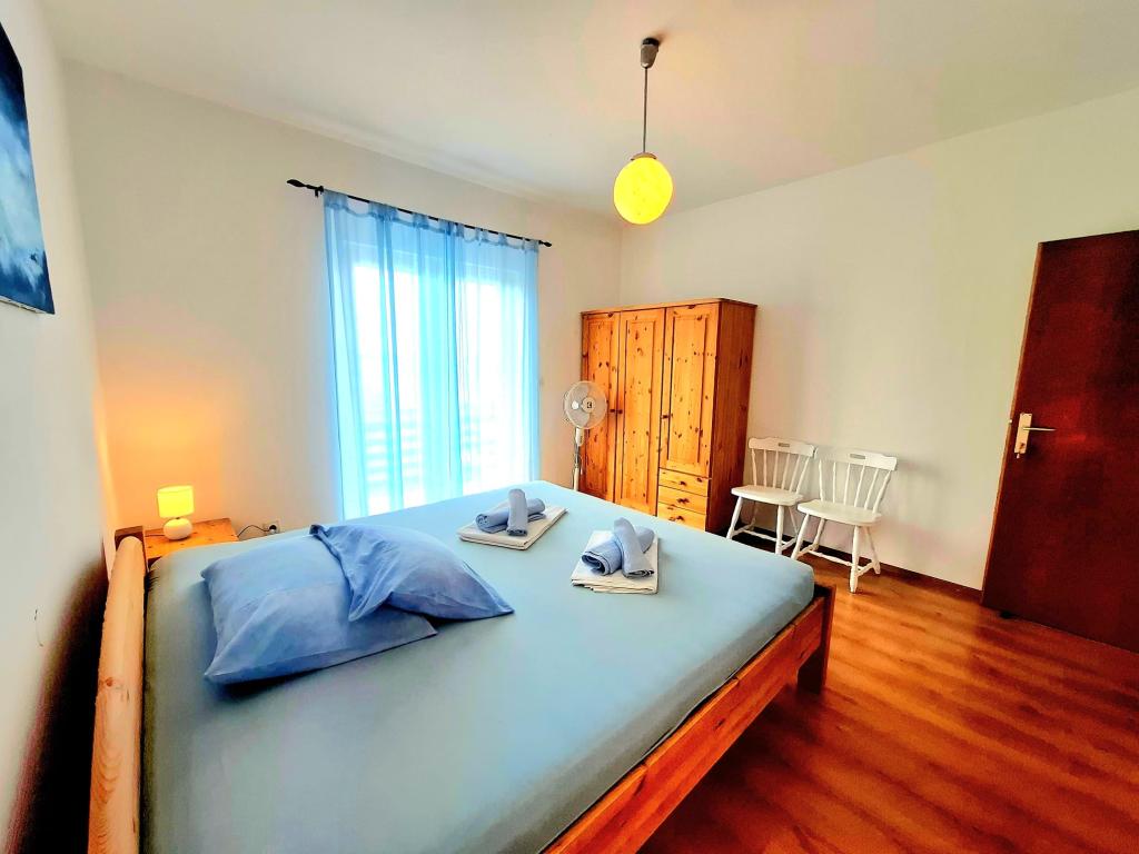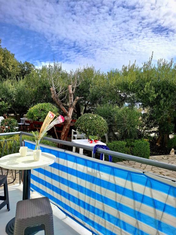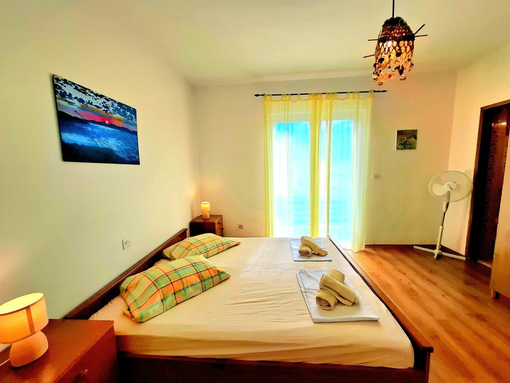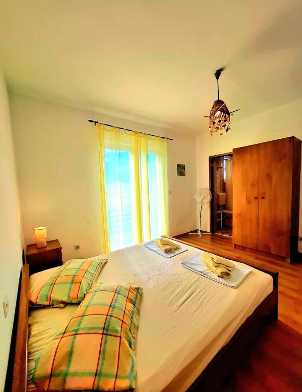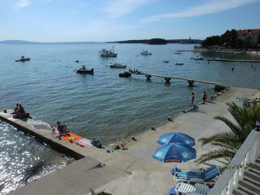 Wij bieden comfortabele en luchtige kamers direct aan zee, ideaal voor reizigers die op zoek zijn naar betaalbare accommodatie op een uitstekende locatie. Elke kamer heeft een eigen badkamer en balkon, comfortabele bedden en een vloerventilator voor een aangenamer verblijf. De Gele Kamer biedt ruimte voor een babybedje (gratis) en een extra bed (tegen een toeslag) en kan daarom ook als familiekamer gebruikt worden. Gasten kunnen gratis parkeren, gebruikmaken van een groot terras en een goed uitgeruste gemeenschappelijke ruimte in de ruime hal om het ontbijt te bereiden. (Er is geen keuken). Een bijzondere troef is onze tuin in de schaduw van olijfbomen met ligstoelen en tafels - de perfecte plek om te ontspannen met snelle wifi voor alle gasten. Zonder tv en airconditioning ligt de focus op een authentieke zomervakantie. We bevinden ons op een steenworp afstand van de stranden, de boulevard en de strandtenten, waardoor we de perfecte uitvalsbasis zijn voor een actieve vakantie tegen een betaalbare prijs. Het stadje Rab ligt op slechts 15 minuten lopen.