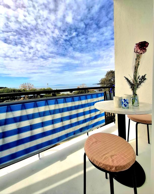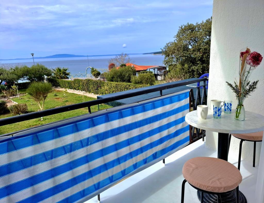 "Bent u op zoek naar een vakantie zoals vroeger - met het geluid van de golven in plaats van het lawaai van de tv? Onze accommodatie op de eerste rij aan zee in Banjol biedt u precies dat: een terugkeer naar de natuur en ware rust. We zijn direct gelegen aan de Lungo Mare-promenade, op slechts 20 minuten lopen van het stadje Rab. In plaats van airconditioning bieden we u de frisheid van de zeelucht en in plaats van een scherm het mooiste uitzicht op de baai vanaf uw eigen balkon. Wat bieden we? Perfecte locatie: op de eerste rij aan zee, direct naast het wandelpad of de ochtendjoggingroute. Geniet van de eenvoud, de geur van zout en de nabijheid van de oude stad." Vakantie zoals vroeger: geen tv en kunstmatige koeling: vloerventilator en zeelucht. Maar wel een goede internetverbinding; gratis wifi. Gemeenschappelijke, goed uitgeruste hoek om zelf uw ontbijt te bereiden: koelkast, koffiezetapparaat, waterkoker, broodrooster, magnetron, glazen, borden en bestek.