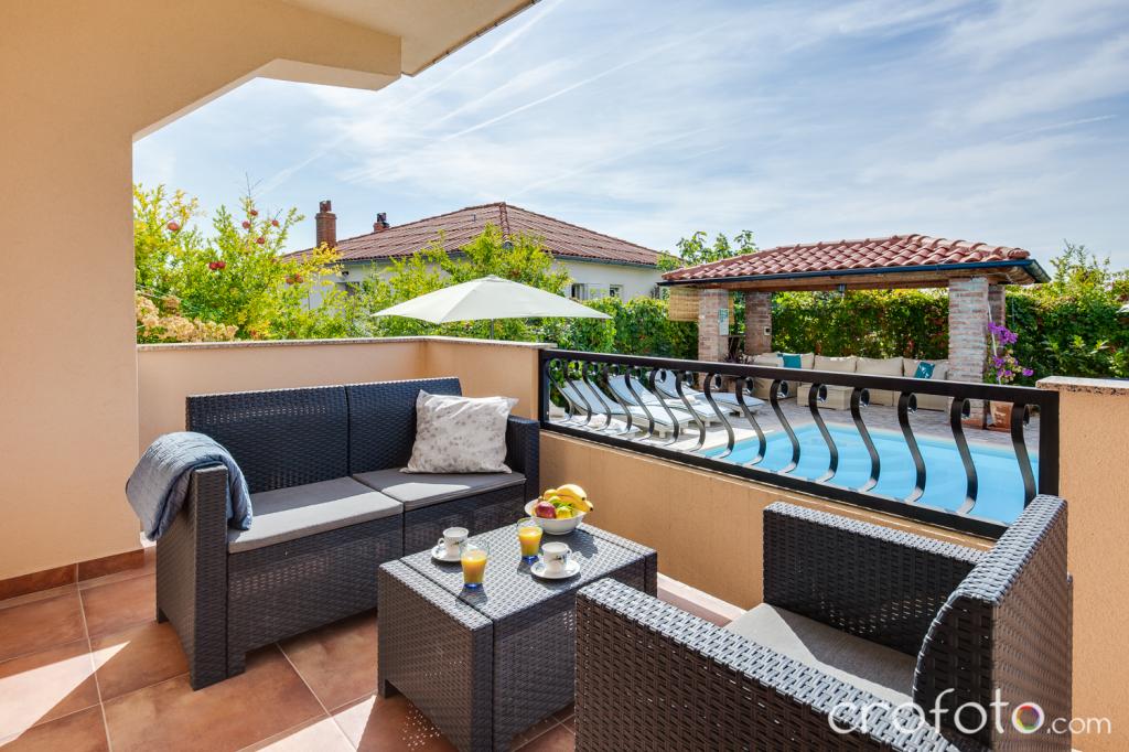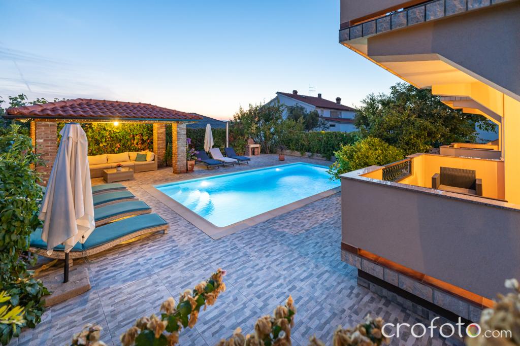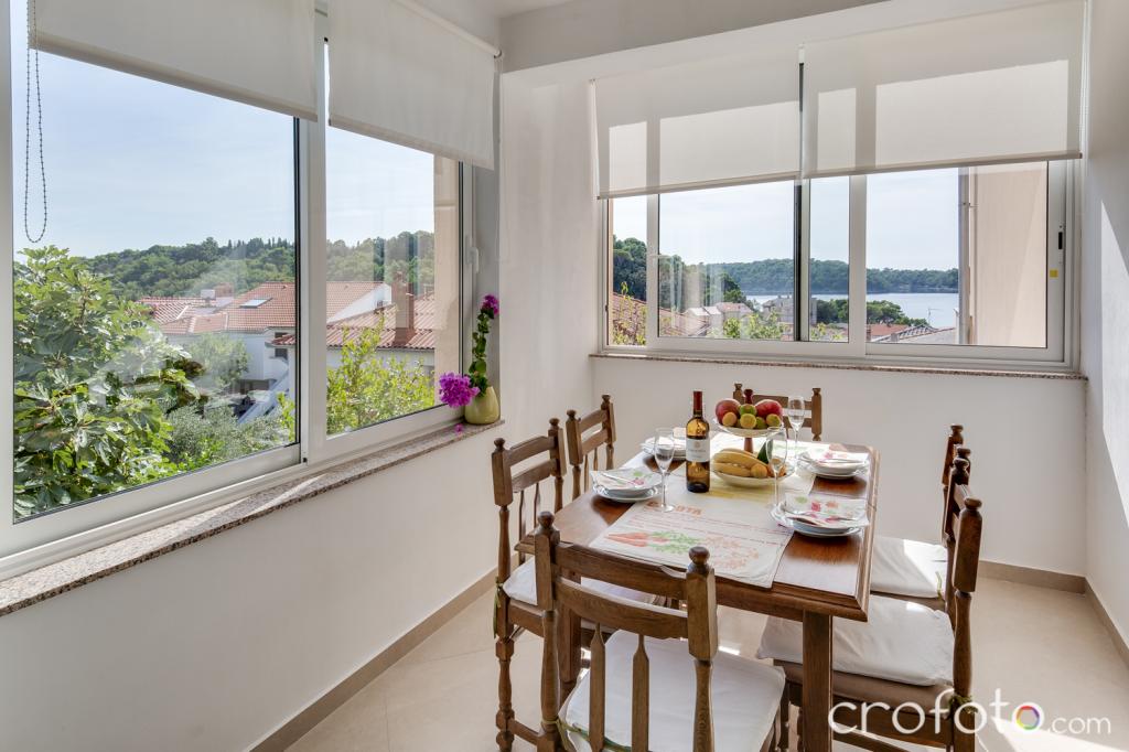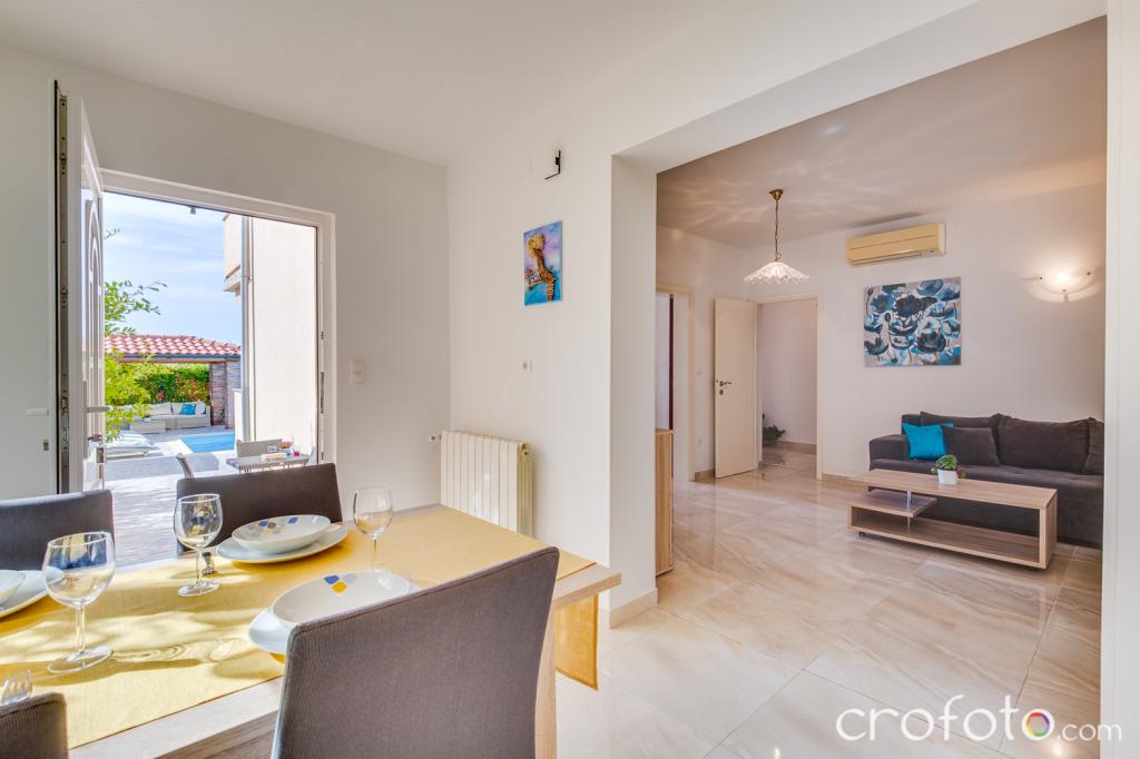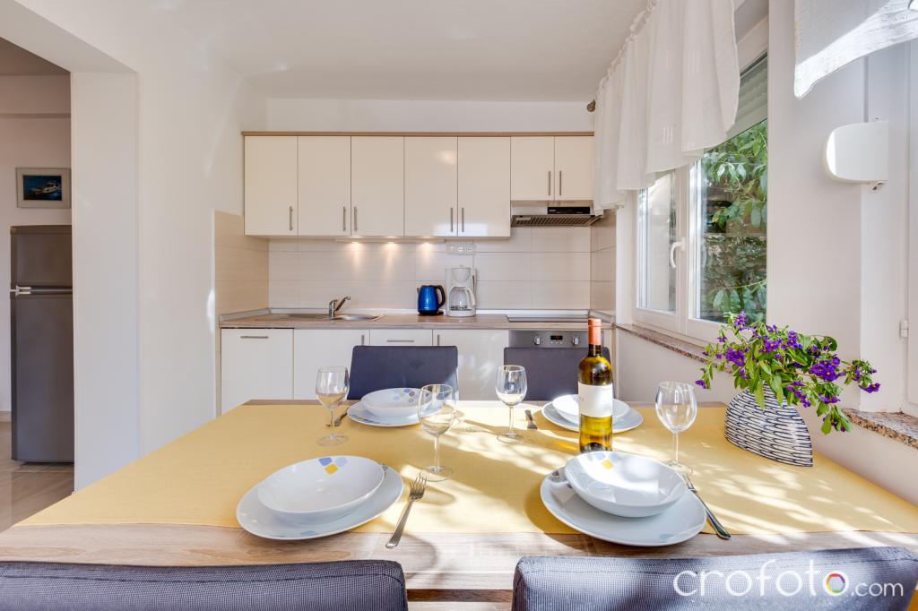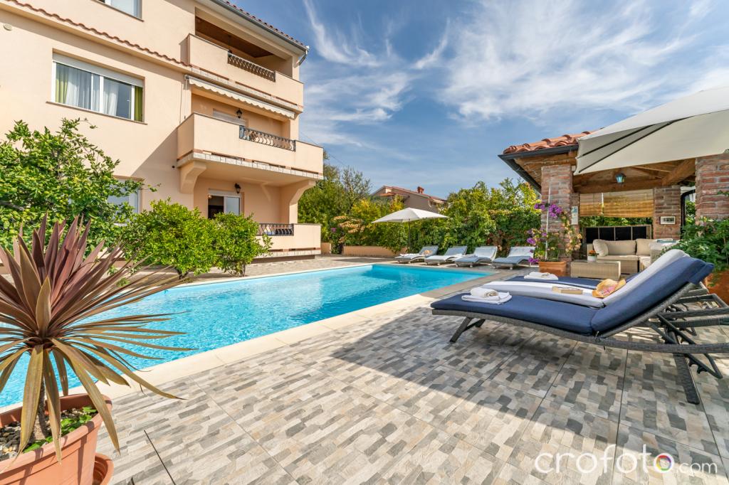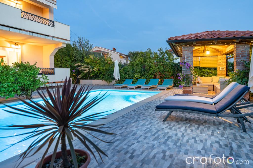 Appartementencomplex JuriĆ heeft een uitstekende ligging, dicht bij het centrum en de beste restaurants, vlakbij de zee en het park. Wat echt een pluspunt is, is de rustige locatie, ver weg van de drukte, met een eigen zwembad en tuin met een apart prieel met open haard en een grote tafel, die we graag ter beschikking stellen aan onze gasten. De aangenaam ingerichte en gemeubileerde omgeving rond het zwembad, met comfortabele zitjes in de schaduw van het gezellige prieel, comfortabele ligstoelen en weelderig groen, draagt bij aan de sfeer. In de tuin zorgen olijfbomen, mediterrane kruiden, sierplanten en bloemen voor een bijzondere ambiance. De sfeer is zeer aangenaam, perfect voor een rustige vakantie en ontspanning.