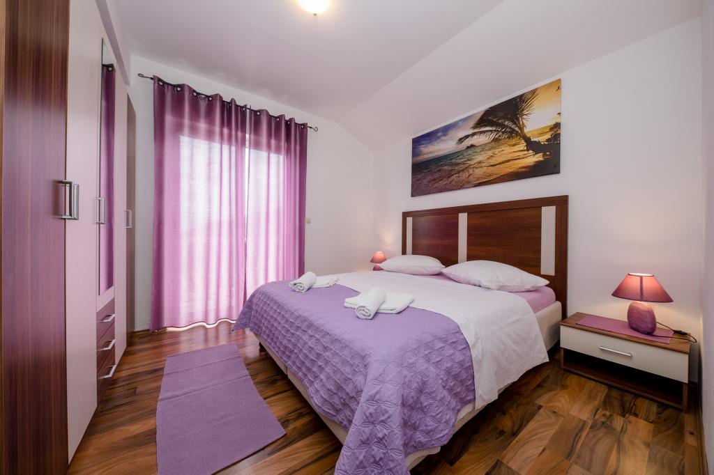 Modern ingerichte appartementen op 350 meter boven de zeespiegel in een rustig dorpje in Mundanije op het eiland Rab genaamd Šćerba. De faciliteit ligt op ongeveer 2-3 km van de zee, het centrum en alle andere belangrijke locaties, dat is ongeveer 10 minuten met de auto. De ligging van het gebouw biedt vanaf alle terrassen en balkons een prachtig uitzicht over het hele eiland en het grootste deel van de Kvarnerbaai. De rust en niet zo veel verkeer van onze stad biedt een perfecte en ontspannende vakantie in de beschutting van de natuur en heerlijk zonnig zomerweer. Er is een grote parkeerplaats naast het huis, en achter het huis is er een prachtig gemaakt zwembad en een ligweide ernaast.