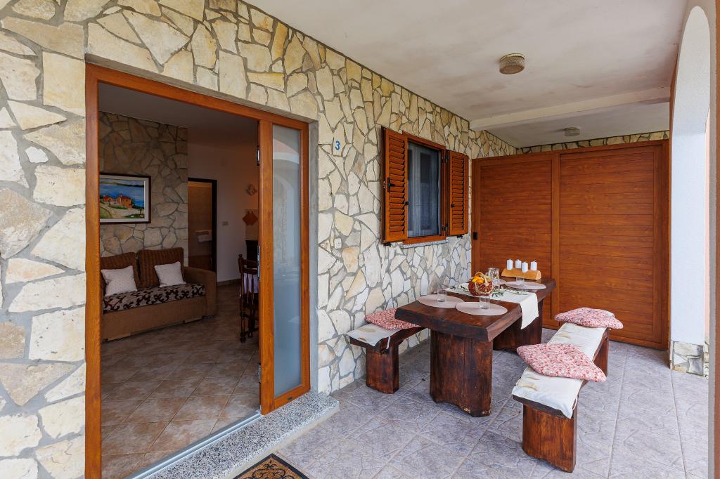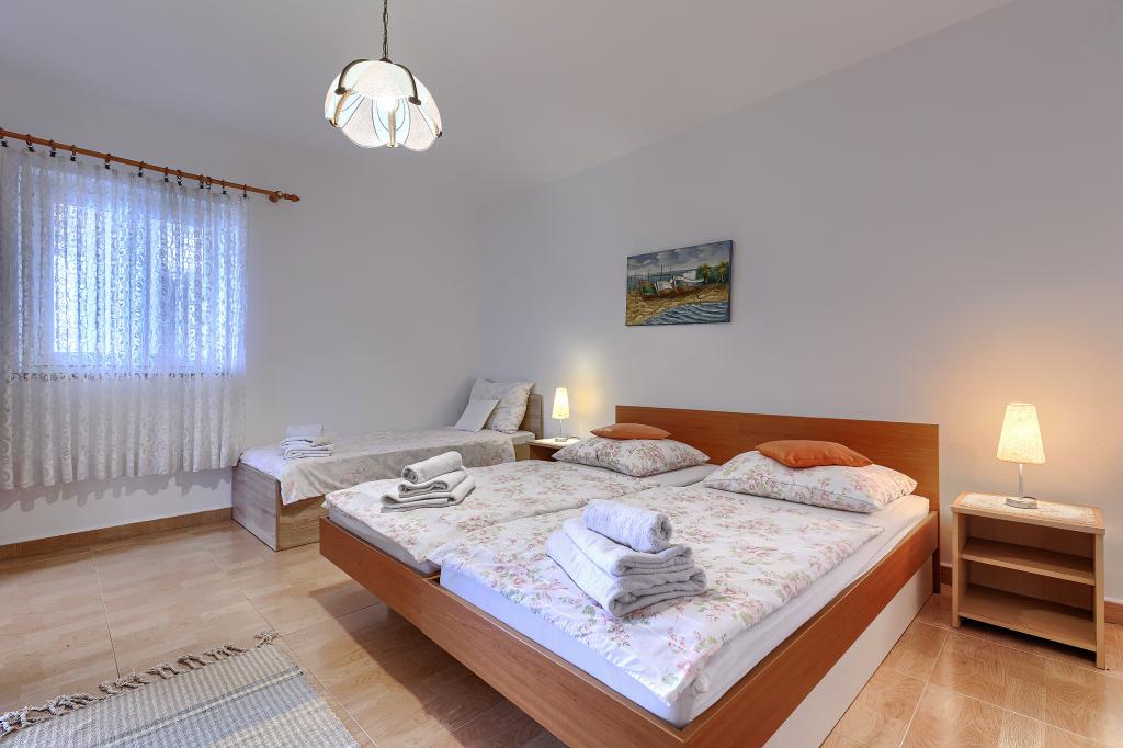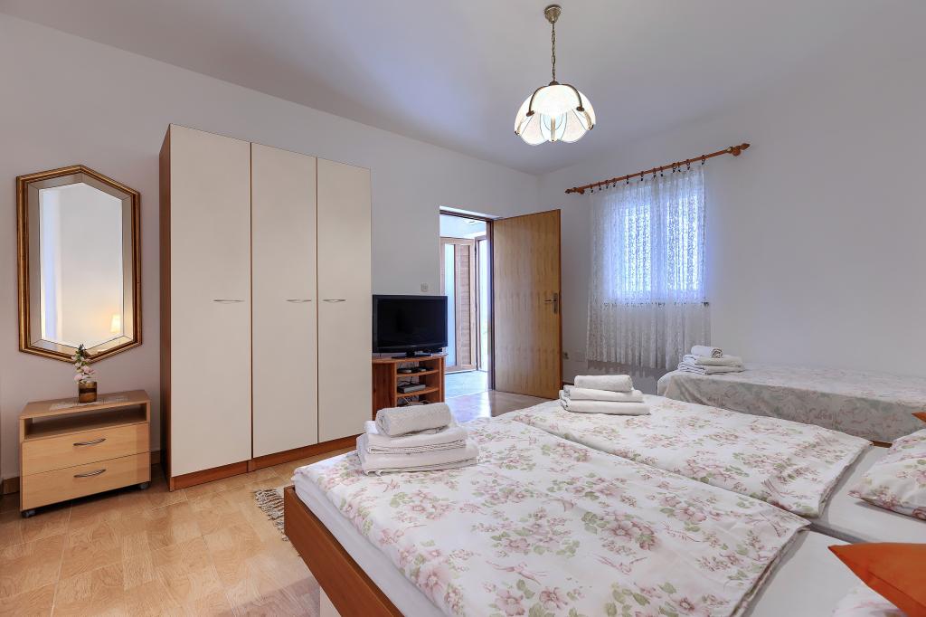 Huis met meerdere appartementen in de nederzetting Drenje. Het ligt op 5 minuten rijden van het strand en op 15 minuten van het stadje Labin. De appartementen bevinden zich op de begane grond. Ze bieden volledige privacy en de mogelijkheid tot ontspanning en rust. Eén appartement heeft een oppervlakte van 42 vierkante meter, een slaapkamer met een tweepersoonsbed en de mogelijkheid tot een extra bed, een woonkamer met eethoek, een volledig uitgeruste keuken, een terras met uitzicht op zee en een badkamer. Het tweede appartement heeft een oppervlakte van 56 vierkante meter, twee slaapkamers met elk een tweepersoonsbed, een woonkamer met eethoek, een volledig uitgeruste keuken, een terras met uitzicht op zee en een badkamer. Het dichtstbijzijnde restaurant en de dichtstbijzijnde supermarkt liggen op 5 minuten rijden. De appartementen bevinden zich op een rustige locatie in een aangename natuurlijke omgeving - alles wat u nodig heeft voor een perfecte vakantie!