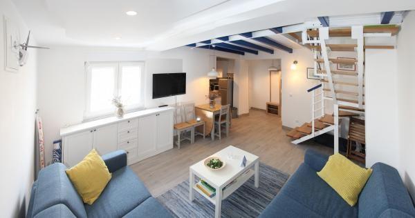 Inlusief wel Toeristenbelasting.APPARTEMENT LUKA 4 2 is 65 vierkante meter en bevindt zich op de eerste verdieping. Op de eerste verdieping is er een keuken en woonkamer, een grotere badkamer en een grote slaapkamer. De keuken en woonkamer bestaan uit een ruimte met een tafel en stoelen van 6 personen en zijn voorzien van airconditioning. Er is ook een satelliet-tv (82 cm) en een slaapbank 180x200. De keuken is nieuw en voorzien van huishoudelijke apparaten: gasfornuis, oven, kookplaat, fornuis, broodrooster, magnetron, koelkast. De badkamer is groot en heeft een douche, toilet en wastafel. Op dezelfde verdieping is er een grote kamer die is ingericht met 180200 tweepersoonsbed, nachtkastjes, kledingkast en dakraam. Op de begane grond is er een moderne trap, waar de kamer met airconditioning een bed van 160x200, een toilet en een balkon heeft.