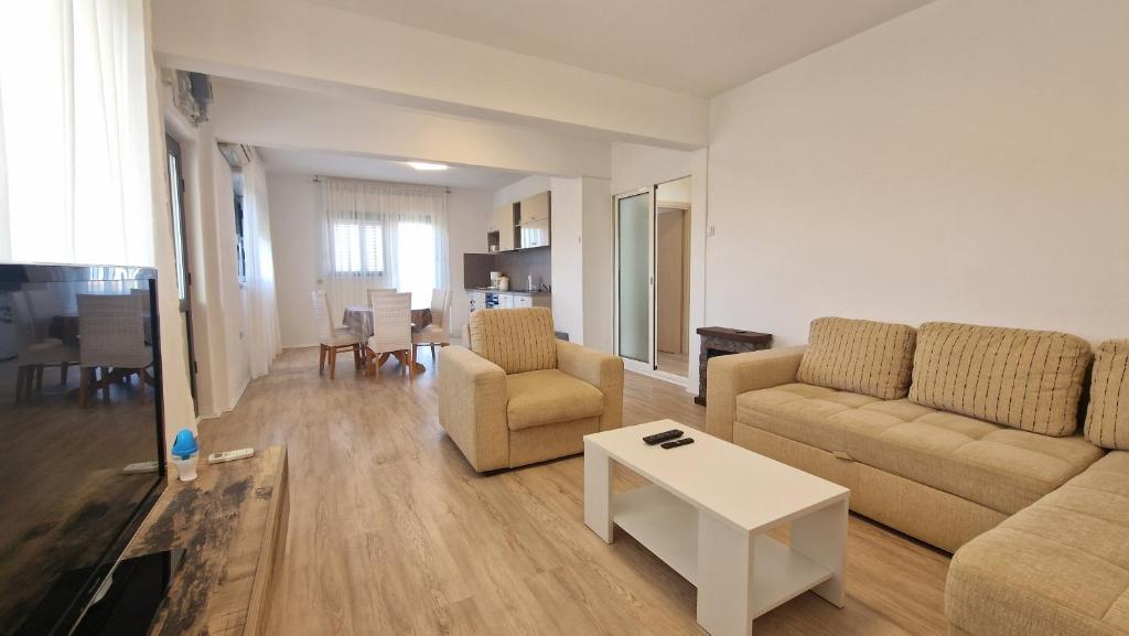 Onze gasten beschikken over 2 volledig aparte appartementen, parkeergelegenheid en een complete tuin. In de tuin bevindt zich een buitenkeuken met een barbecue en een buitendouche. Het appartement biedt een prachtig uitzicht op de zee en het Velebitgebergte en het strand ligt op slechts 3 minuten loopafstand.