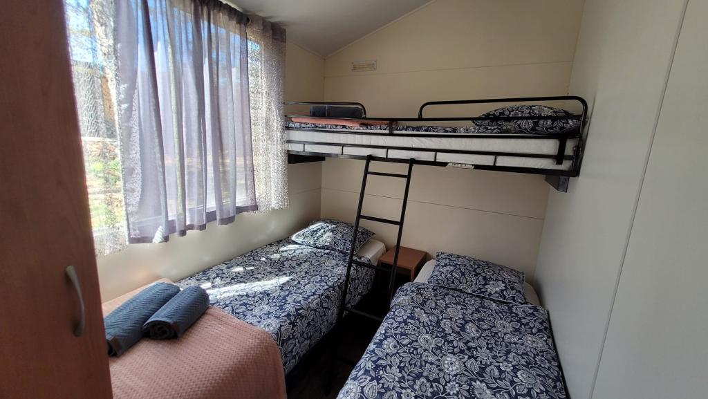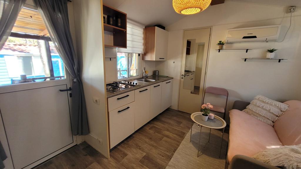 De tweekamerstacaravan NALANI ligt in Camp Planik (24 m2) en beschikt over 5 bedden en een reiswiegje voor baby's. Eén kamer heeft een tweepersoonsbed en de andere heeft twee eenpersoonsbedden en een stapelbed. De badkamer heeft een haardroger, handdoeken en handzeep. De keuken heeft een fornuis, een grote koelkast, een waterkoker, een koffiezetapparaat en een magnetron. In de woonkamer kunt u genieten van de flatscreen-tv en afkoelen met de airconditioning. Bij de ingang is er een groot overdekt terras (20 m2) met een eettafel, barbecue en een rustruimte. Parkeerplaats voor 1 auto is gratis en beschikbaar achter de stacaravan. Huisdieren zijn toegestaan tegen een toeslag!