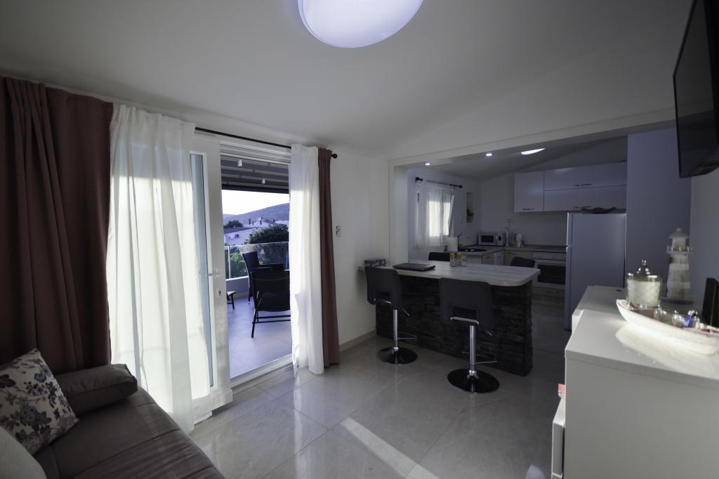 Appartementen Kanica ontspannen bevinden zich in een huis dat bestaat uit een begane grond en eerste verdieping. Aprtman A1 bevindt zich op de begane grond met een terras, en het appartement A2 is gelegen op de eerste verdieping met een lange balkon. De appartementen zijn gelegen in Kanica, een kleine plaats met kristalhelder water en kleine rotsachtige stranden. Kanica is een kleine plaats idalno te genieten van de zomer magie van zon en zee. Kanica voor gasten die op zoek naar iets meer actieve vakantie biedt duiken, vissen, waterskiën in de baai kunt u waterfietsen en kano's, en boottochten huren. Deze plaats is verwijderd van Trogir 25 km en ligt halverwege tussen Split en Sibenik (50 km).