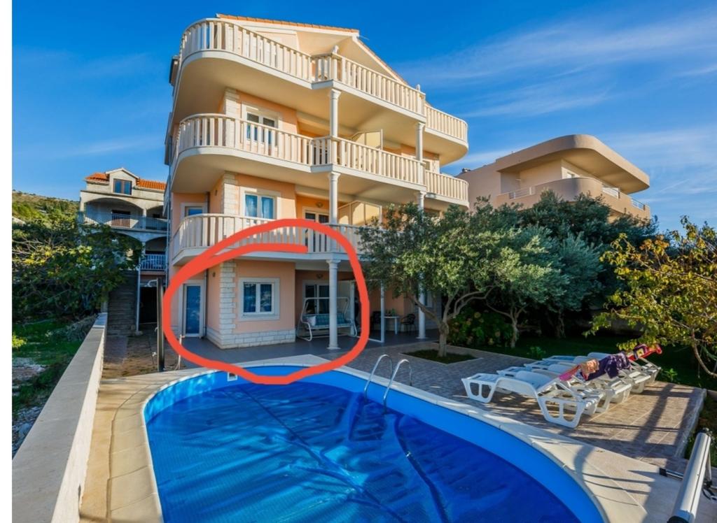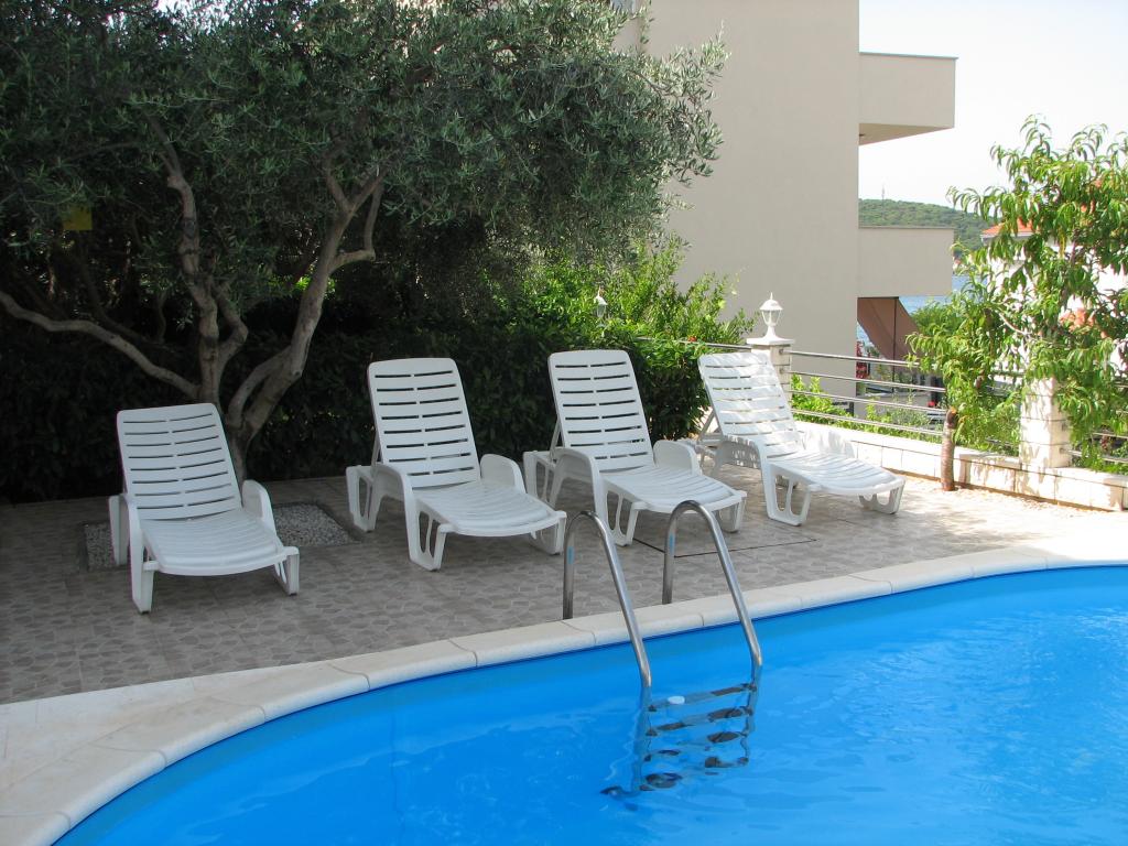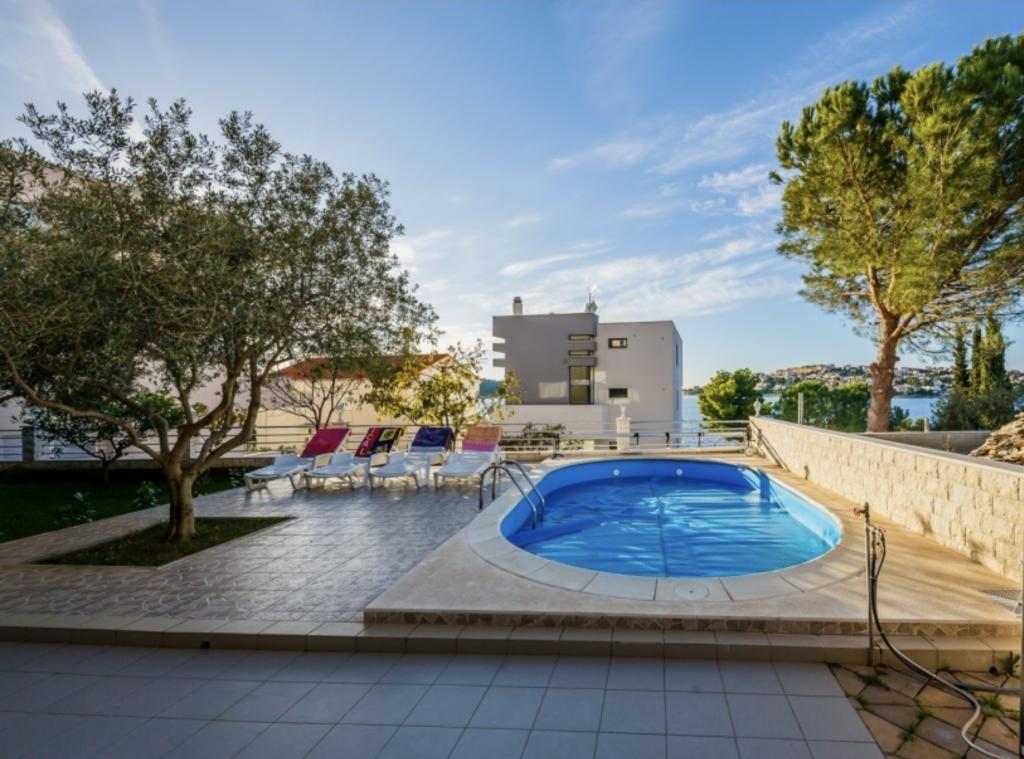 Geniet van appartementen met zeezicht en een zwembad, vlakbij het kiezelstrand met uitzicht op Rogoznica en de open zee. Zatoglav is een rustige plek, ver weg van de drukke hoofdweg, lawaai en mensenmassa's, en ligt op slechts een paar kilometer van Rogoznica. We hebben 6 appartementen voor 24 personen. 4 appartementen hebben een comfortabele slaapkamer, een keuken met fornuis en oven, een extra grote slaapbank voor twee volwassenen, een badkamer, een terras en airconditioning. Het 5e appartement op de bovenste verdieping heeft 2 slaapkamers, 2 badkamers en een groot terras. Het zesde appartement bevindt zich op de begane grond en is geschikt voor 3 personen. De prijs is inclusief toeristenbelasting, schoon bedlinnen, airconditioning, handdoeken en servies, gebruik van de buitendouche en barbecue. PS: Het strand ligt op precies 66 meter lopen van het huis, of 27 meter hemelsbreed. Welkom.
