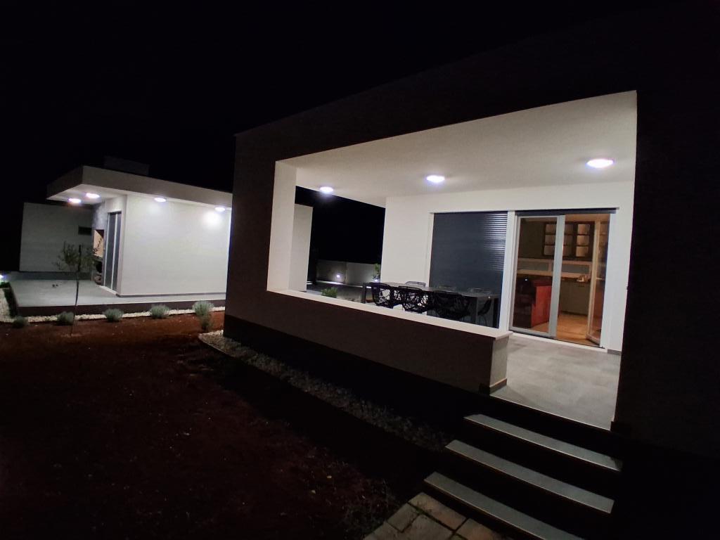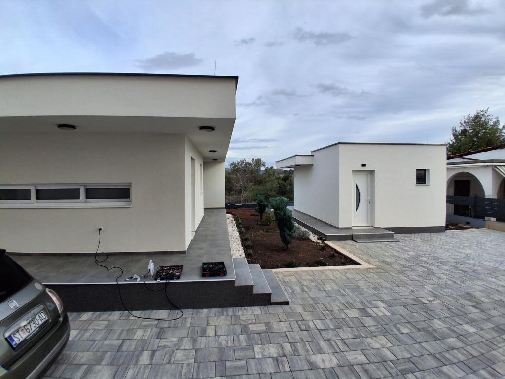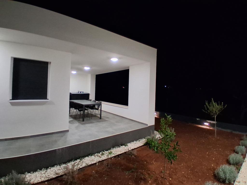 Nieuwe gelijkvloerse woning met een woonoppervlakte van 70 vierkante meter en een overdekt terras van 30 vierkante meter, gelegen op een rustige locatie, ver van de weg, met uitzicht op de olijfgaard. Het ruime terras is afgeschermd van inkijk van de buren en garandeert privacy. Het strand ligt op loopafstand, op een paar minuten van de woning. Er is een eigen parkeerplaats voor drie auto's. De woning beschikt over twee slaapkamers met airconditioning (1. een groot tweepersoonsbed, 2. twee eenpersoonsbedden), een ruime woonkamer met airconditioning, open keuken en eethoek, en een grote badkamer met toilet. De woning is volledig ingericht met nieuwe meubels en apparatuur, een smart-tv en een terras met een grote tafel voor 6 personen.