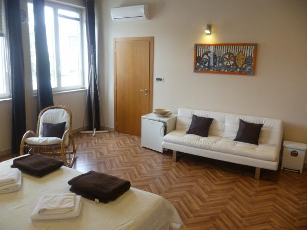 Appartement ANA en Tea Room, gelegen op de eerste verdieping van het huis Apartments Ante. Ze zijn gelegen op zeer interessante locatie, want in 5-10 minuten lopen, kunt u het centrum van de stad te bereiken, naar het strand, naar de supermarkt, bus en wat taxi station, dokter, apotheek, restaurants ... Op de begane grond is er een bakkerij, met een uitstekende gebak en heerlijke taarten. Dus, als je wakker wordt, letterlijk in slippers kunt gaan voor vers brood ... Aangezien het appartement ANA, en Tearoom, op dezelfde verdieping, indien nodig, TEA en ANA kan één grote luxe en comfortabel appartement van 80m2, ideaal voor 4,5, maximaal 6 personen geworden. Kom en zie onze kwaliteit !!!