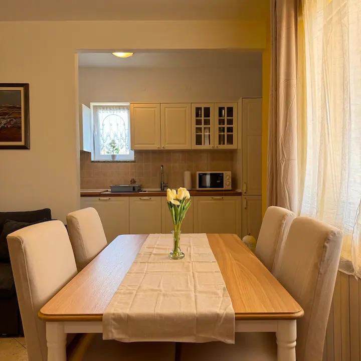 Appartementen Folo zijn gevestigd in een gezinswoning met 2 appartementen te huur en 1 ander appartement waar de eigenaren wonen. Het huis ligt op een rustige locatie, op slechts 2 km van de zee en 1 km van het centrum van Rovinj. Binnen honderd meter vinden we een winkel, bakker, restaurant, wasserette en nog veel meer. De plaats is via voet- en fietspaden zeer goed verbonden met de stranden en de zee. Het huis heeft een eigen parkeerplaats voor de gasten en een omheinde tuin. Elk appartement heeft een aparte ingang. Jullie zijn allemaal welkom! :)