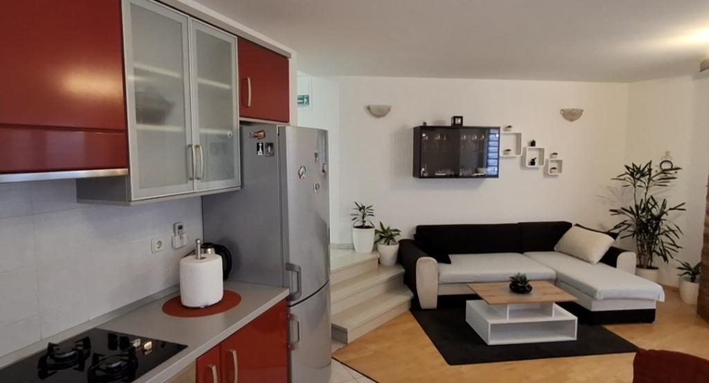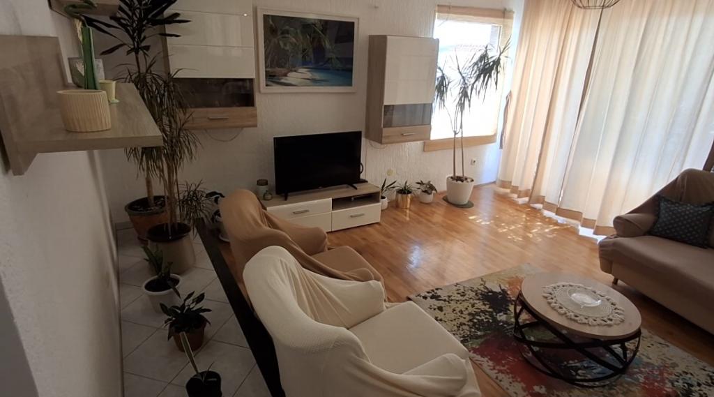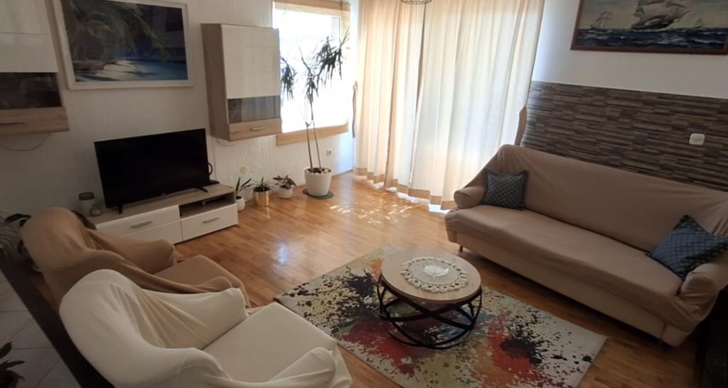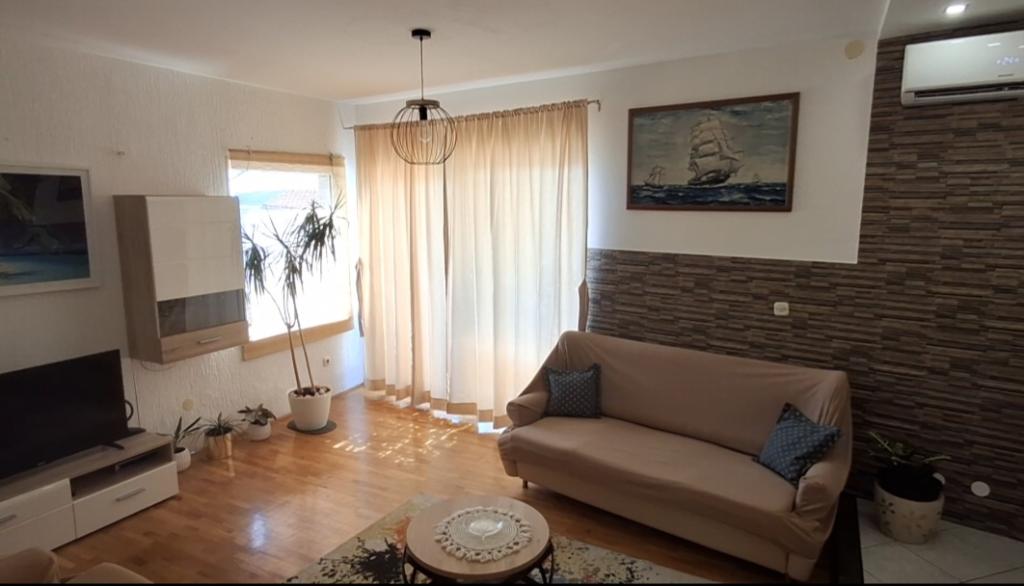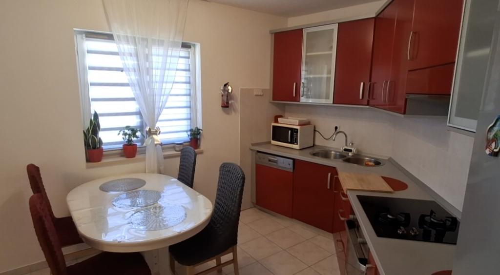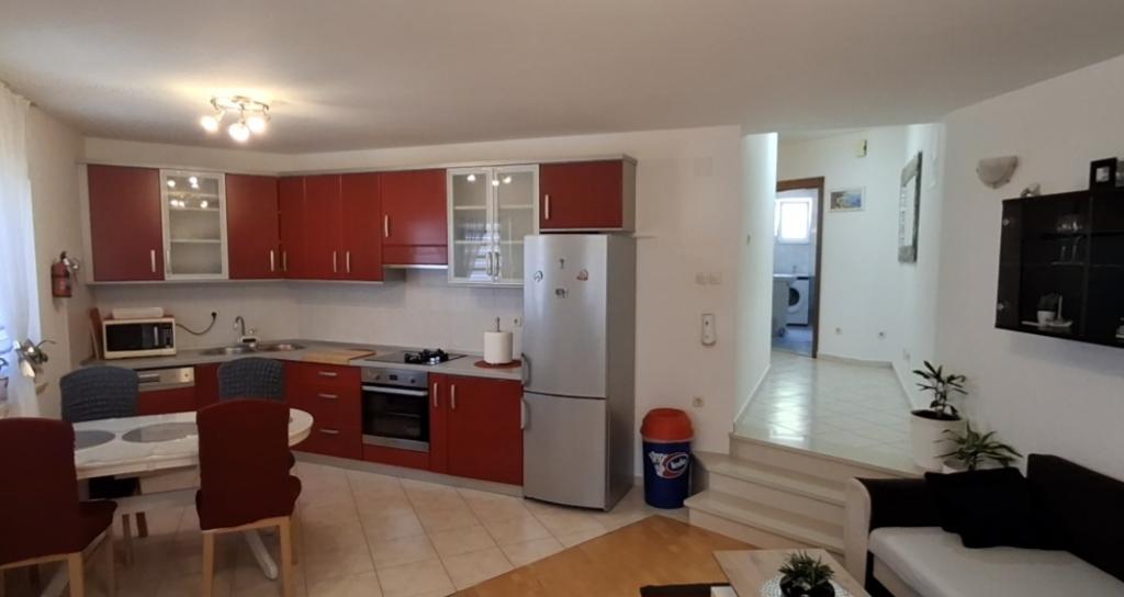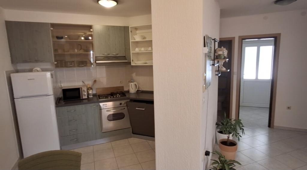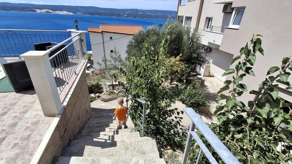Appartement aanbevolen, alles zoals beschreven (vaatwasser, oven, grote koelkast, bidet). Prachtig uitzicht op zee vanaf het balkon en de keuken. In een slaapkamer is er een extra balkon met uitzicht op de zee, en in het andere venster met uitzicht op de prachtige bergen. Op het terrein is een zwembad met een prachtig uitzicht op de zee en de bergen. Het nabijgelegen strand (beneden) is zeer intiem, was er niet veel mensen - een klein strand kiezels en vele plaatsen steenachtige / beton en wat belangrijk is schaduwrijke. Zeer mooie gastheer (Ivo begroeten u en uw gezin) - behulpzaam en beleefd. Op een dag bracht hij ons warme koekjes met het vullen.
