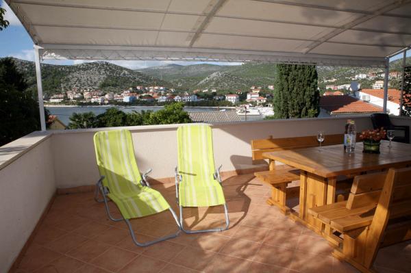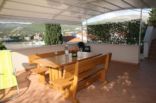 Apartments Villa Marin is gelegen in een rustig vissersdorpje Seget Vranjica. Seget Vranjica ligt op 5 km van de luchthaven, vijf minuten van de stad Trogir en 30 min van de stad Split. De plaats heeft drie restaurants, een aantal particuliere hotels en cafés. Afstand van Honing is ongeveer 1000 m langs de boulevard die leidt naar het hotel complex zijn er een breed optie van entertainment van tennis, golf, fietsen, enz. De appartementen zijn gelegen op 15 m van het strand en in de baai zijn er een paar zandstranden. Alle appartementen hebben een balkon met een adembenemend uitzicht over de baai Marina bieden.