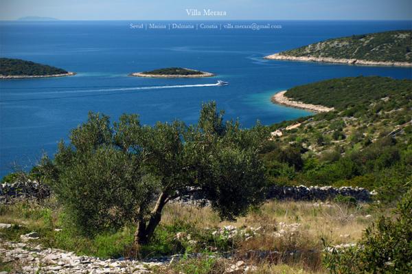 APPARTEMENT IN EEN HUIS AAN DE KUST, MET EEN FANTASTISCH UITZICHT, VER VAN DE MENIGTE! Appartement Merara ligt direct aan de kust, in de baai van Stari Trogir tussen Marina en Rogoznica, Trogir en Primošten. Het ligt ver van de nederzetting, wat zorgt voor rust en genieten in de natuurlijke omgeving van pijnbomen. Toegang is mogelijk per auto en boot. Parkeerplaats voor twee auto's en een ligplaats voor een boot zijn beschikbaar, evenals een extra ankerplaats in de buurt van het huis. Maximaal 6 gasten kunnen verblijven in twee slaapkamers en een woonkamer. Badkamer met toilet, keuken met eetkamer, open haard met grill op een groot terras met een prachtig uitzicht. De tuin met mediterrane planten is het enige dat het huis van de zee scheidt. Hoewel het geïsoleerd is, is er dankzij het zonne-energiesysteem en de stroomgenerator al het comfort dat u gewend bent: warm water, televisie / SAT, elektriciteit, wifi, enz.