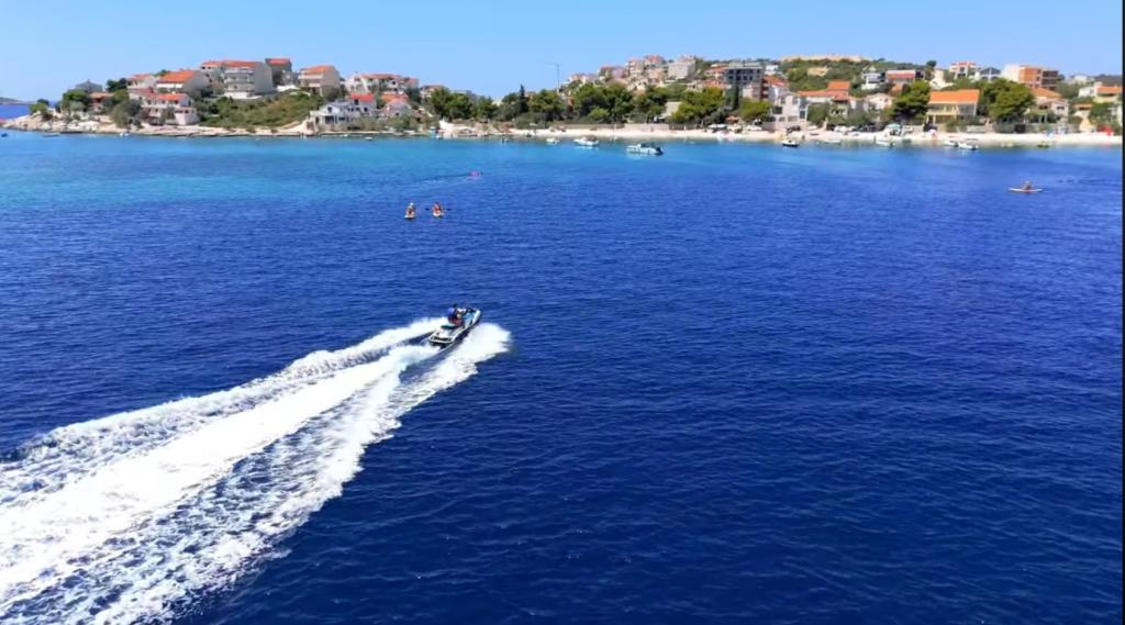 Mirakul Apartments ligt in Sevid, een klein stadje aan de Rivièra van Trogir, halverwege Trogir en Primošten. Het is een rustige omgeving, ideaal voor degenen die een vakantie willen weg van de drukte van de stad, maar als ze beroemde toeristische bestemmingen willen bezoeken, in de buurt zijn Rogoznica (10 km), Primošten, Trogir (18 km), Split, Šibenik (45 km), Krka Nationaal Park (60 km)... Appartementen Mirakul-Sevid bestaan uit twee huizen met 8 appartementen en zijn gelegen op een perceel van 1600 m2, 1e rij aan zee, onze tuin ligt op slechts 5 m van het strand. Het strand is kiezelstrand en geschikt voor kinderen.