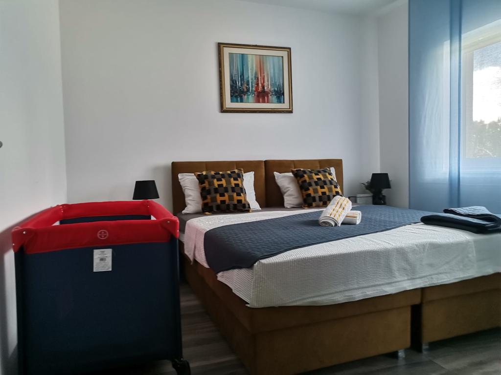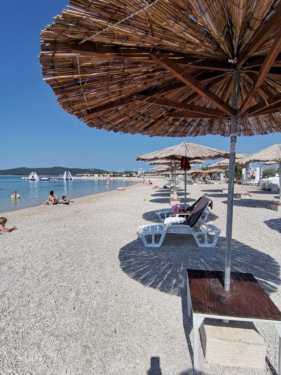 Vakantie met familie en vrienden zonder stress en lawaai in een rustige omgeving. Afstanden 1,8 km van het prachtige strand "Rezalište" met gratis parkeren en rijke inhoud, 4 km van het stadscentrum, 10 km van NP Krka, en alles wat je nodig hebt, winkels, restaurants, fastfood, apotheek, voetbal- en basketbalveld met oefening uitrusting, allemaal binnen een straal van 0,4 km.De prijs is inclusief parkeerplaats voor maximaal 3 voertuigen op het erf en toeristenbelasting.