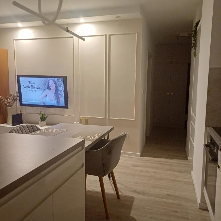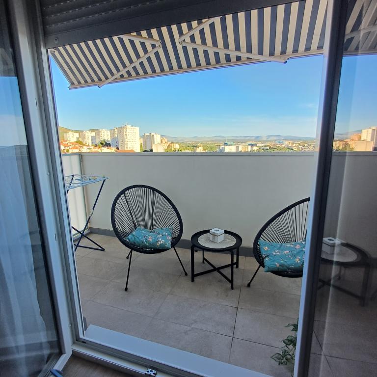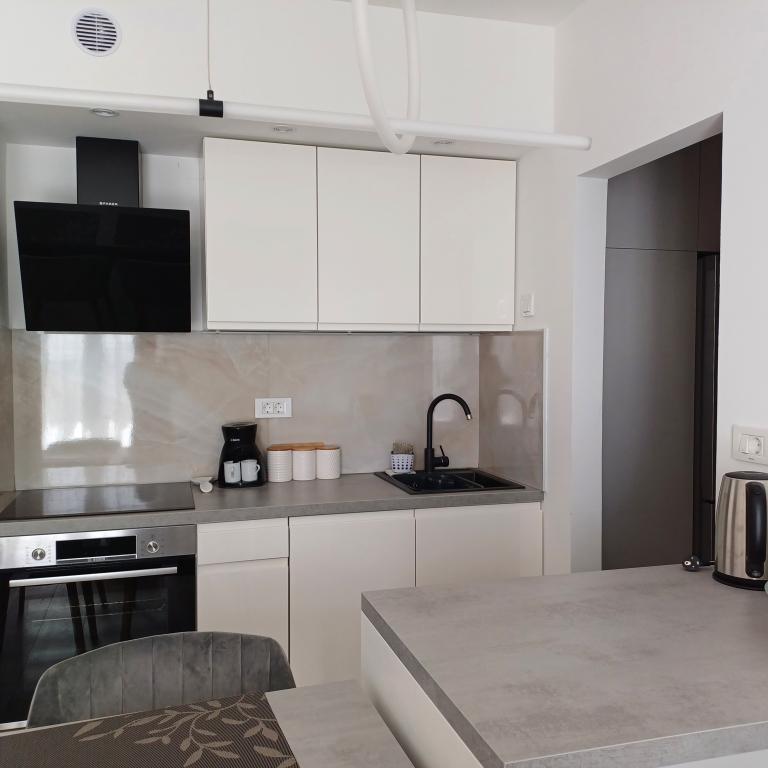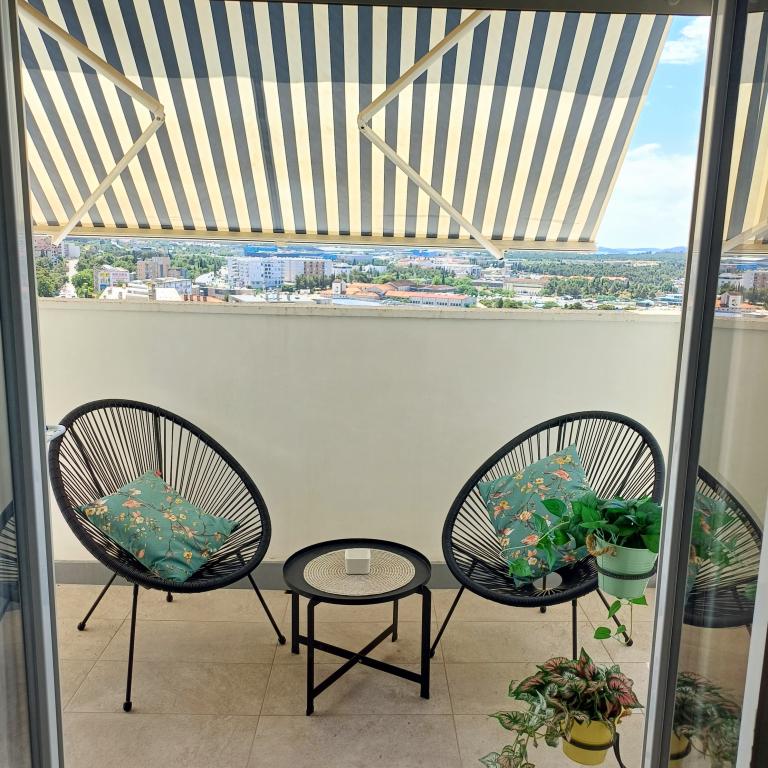 Het luxe appartement is gelegen op de 10e verdieping van een woongebouw in Šibenik op een uitstekende locatie, op 20 minuten lopen van het oude stadscentrum en het stadsstrand Banj. Luxe accommodatie met balkon met prachtig uitzicht op de zee en de stad biedt gasten een aangenaam en ontspannen verblijf. Het appartement bestaat uit een ruime slaapkamer, hal, badkamer met inloopdouche, haardroger en wasmachine. De woonkamer en eetkamer bevinden zich in een ruimte met een moderne keuken die is uitgerust voor een kort of lang verblijf en voorzien is van serviesgoed, keukengerei, een fornuis, een oven, een vaatwasser, een koelkast, een waterkoker en een koffiezetapparaat. Het appartement is voorzien van airconditioning en gasten hebben toegang tot tv en gratis WiFi. Er is openbare parkeergelegenheid voor het gebouw zelf. Zodra u het gebouw verlaat en de straat oversteekt, vindt u op 30 meter afstand een supermarkt, een apotheek en een koffiebar, evenals een bank, postkantoor, pizzeria, fitnessruimte, kapsalon, winkelcentrum, busstation , aanlegsteiger ligt op een afstand van 500 m - 700 m.