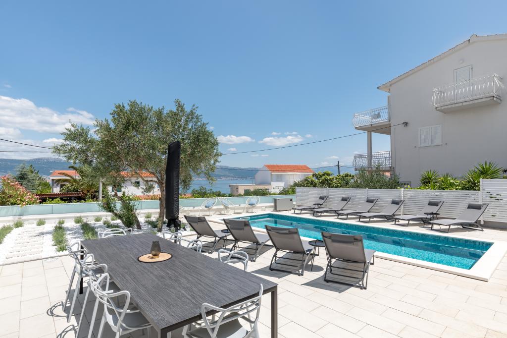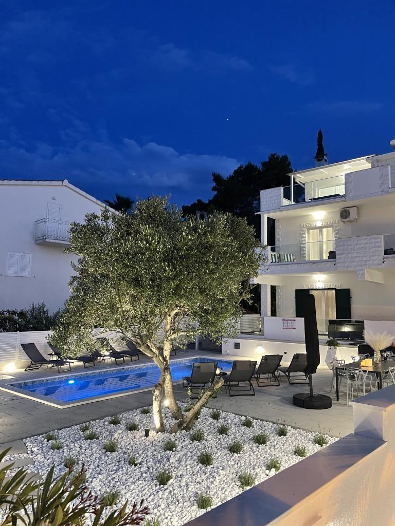 We zijn net terug van ons zomerresort Slatine. Om de “gekke menigte” op de Kroatische snelweg en bij de tolpoortjes te vermijden, hebben we met pijn in het hart onze jaarlijkse vakantie met een dag ingekort en vrijdag opnieuw begonnen. Met pijn in het hart, want wij waren allemaal heel tevreden met deze prachtige accommodatie. We waren met 5 volwassenen en 3 kinderen in appartementen A en E. Alles is prachtig nieuw ingericht, grote kamers zodat iedereen van zijn privacy kan genieten. Geweldig zwembad en ook een massagebad. Een leuke tafel met comfortabele fauteuils en ook voldoende ligstoelen. Naast het zwembad is er een kleine buitenkeuken met 2 houtskoolgrills. Het strand ligt op 2 minuten afstand, met witte kiezels en daardoor ideaal voor kinderen en ouderen. Het is niet druk. De appartementen worden bewoond door leuke gasten en er zijn voldoende parkeerplaatsen aanwezig. Al met al alles wat je maar kunt wensen voor een geweldige vakantie, minus de files, maar er is ook de luchthaven van Split aan de overkant van de straat op het vasteland. Hoe dan ook, heel erg bedankt Marina voor ons fijne verblijf. De familie Schumich uit Oostenrijk