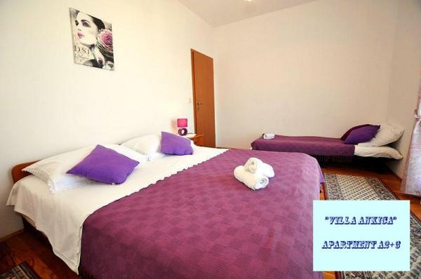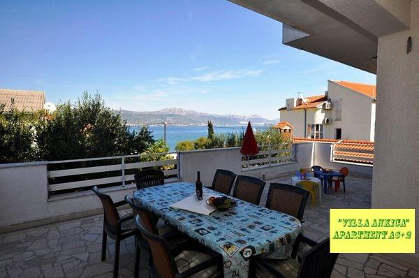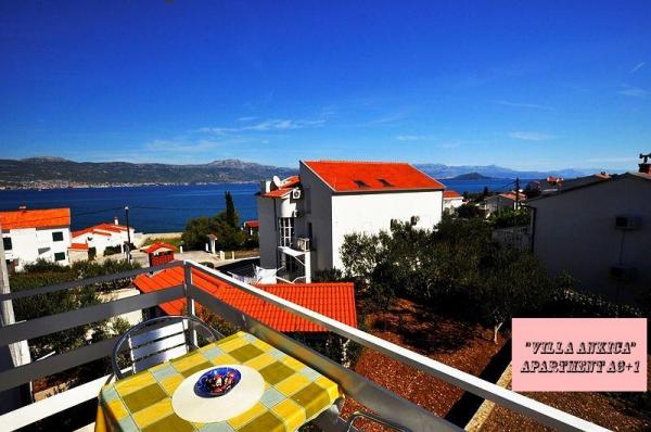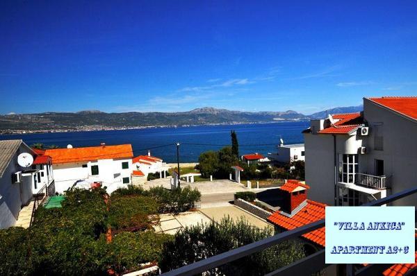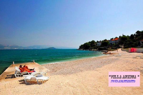 Villa Ankica ligt in Slatine op het eiland Ciovo, op 4,5 km afstand van Trogir, een van de mooiste steden aan de Adriatische kust, die wordt beschermd door UNESCO. De villa ligt op ongeveer 1 uur rijden van het nationale park Krka. De villa is gelegen op een oppervlakte van 1100 vierkante meter. De capaciteit van de villa is maximaal 20 personen. Op de begane grond bevindt zich appartement A6. Op de eerste verdieping zijn appartementen A4j en app. A3 2. Op de tweede verdieping is de app. A4. In een rustige omgeving kunt u genieten van uw vakantie in een van onze vier moderne appartementen met een prachtig uitzicht op zee. Elk appartement is voorzien van airconditioning en heeft een satelliet-tv en een groot terras. Tijdens uw vakantie staat uw auto, fiets of boot veilig op onze grote afgesloten parkeerplaats. Op de grill in de prachtige tuin kunt u Dalmatische specialiteiten bereiden en genieten van onze lokale wijnen, cognac, likeuren en eco-olijfolie.