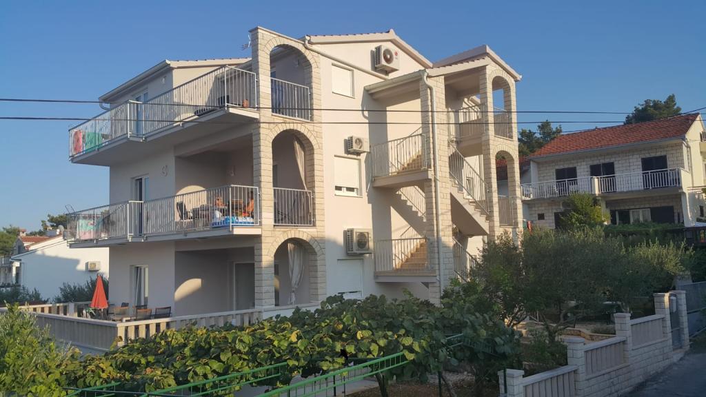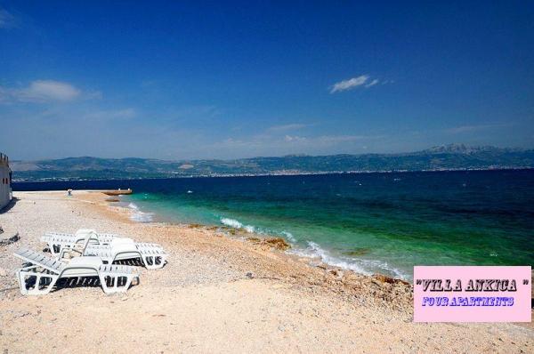 zeer schone, goed onderhouden en goed onderhouden appartementen. Eigenaren komen tot het uiterste om elkaar te ontmoeten. De appartementen hebben een prachtig uitzicht op Kaštelská Riviéra en deels ook op Split. Naar het strand 30 m. Het strand is niet vol met toeristen, dus u kunt elke plaats kiezen. Naar Trogir 4 km, die prachtig is door de eeuwenoude constructie. het is slechts een korte afstand tot het winkelcentrum Kaufland en Leidl en nog eens 100 meter van het appartement is een kleine winkel van Tommy, die goed is gevuld. Ik adviseer sterk.