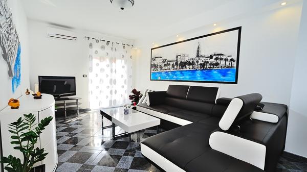 Split, district Manus: Een nieuwe, moderne appartementen op een aantrekkelijke locatie. De appartementen zijn voorzien van airconditioning, internet (Wi-Fi) ADSL satelliet-tv (inbegrepen) en met volledig ingerichte keukens waar elke gast vele soorten koffie, thee en lokale aperitief vindt in welkom. De appartementen zijn gelegen op slechts 5-6 minuten lopen naar het centrum van de stad (het paleis van Diocletianus), een 10 minuten lopen naar het mooie strand Bacvice met dag en nacht entertainment activiteiten, 10-12 minuten lopen naar het ziekenhuis Firule tennisbanen en 2 minuten lopen naar de animatieprogramma's voor kinderen park. Ook, op slechts vijf kilometer van Split zijn golfbanen. Deze wijk is erg populair omdat je dicht bij het strand, de haven en het busstation, maar toch dicht bij het centrum van de stad. In feite, hoeft niet eens een auto nodig want alles is zo dichtbij. Het appartement 2 1 extra bed is groot sofa afmetingen 140x200cm waar kan een andere persoon slapen: het verzoek voor een vierde persoon in rekening gebracht een extra 10 euro.