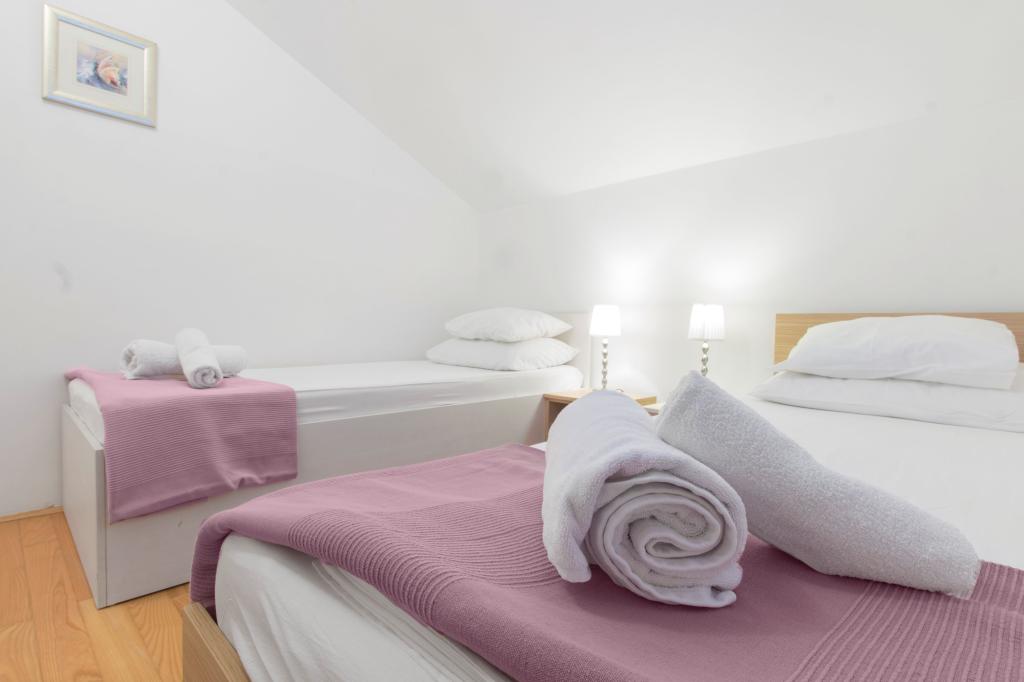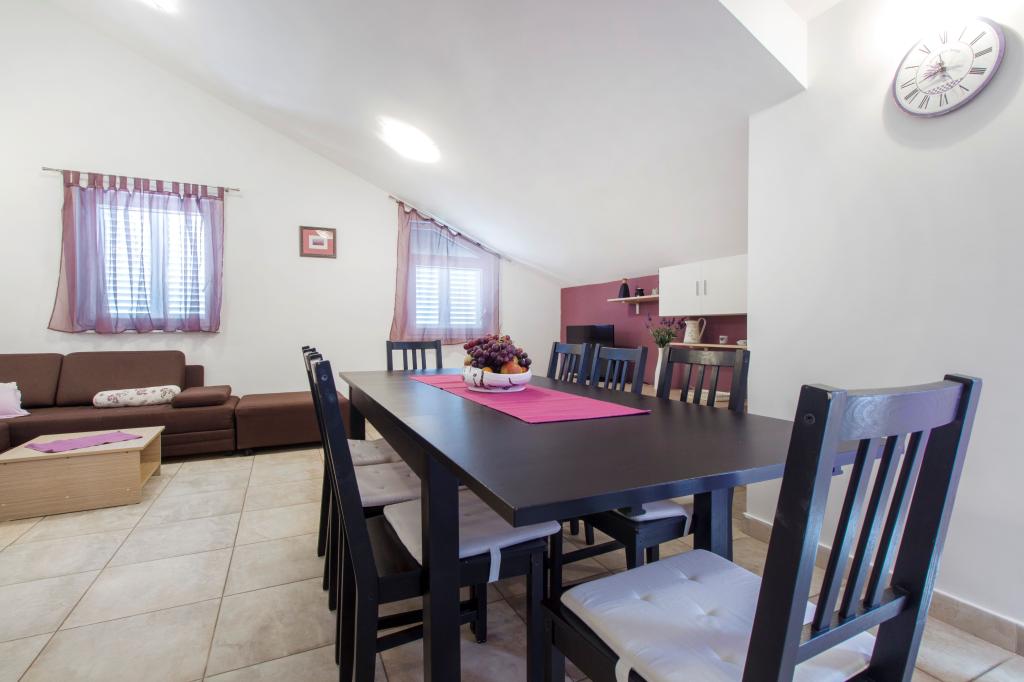 Als u op zoek bent naar een rustige vakantie, weg van hotels en bruisende toeristische bestemmingen, raden wij een vakantie in Srima. Als u op zoek bent naar uit, entertainment of een goede nacht, ga naar Vodice, een beroemde toeristische centrum. Wij kunnen u drie appartementen Rozemarijn, olijfbomen en lavendel uitzicht op zee, een eigen parkeerplaats, barbecue en toegang tot internet te bieden. De appartementen zijn geschikt voor 6 2 personen, inclusief 1 badkamer, toilet, twee terrassen, drie slaapkamers, een grote woonkamer. Het strand ligt op 4 minuten hoda.Nalazi in een rustige omgeving ideaal voor kinderen.