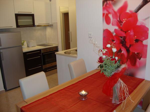Volledig uitgeruste en moderne appartementen in een rustig gedeelte van Srima (Vodice), gelegen op 100 m van de zee. Ze zijn uitgerust met airconditioning, gratis draadloos internet (Wi-Fi) en satelliet - TV. De badkamer heeft een hydromassage douche en een haardroger. Gasten hebben toegang tot een tuin en gratis barbecue. Alle appartementen hebben een terras met uitzicht op de zee. De faciliteit is gratis parkeergelegenheid. De inrichting is gelegen op een paar minuten lopen naar het centrum.